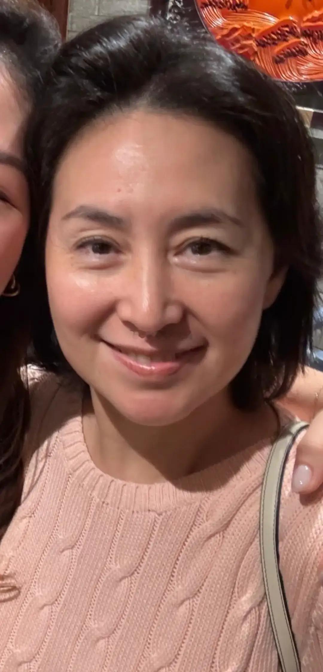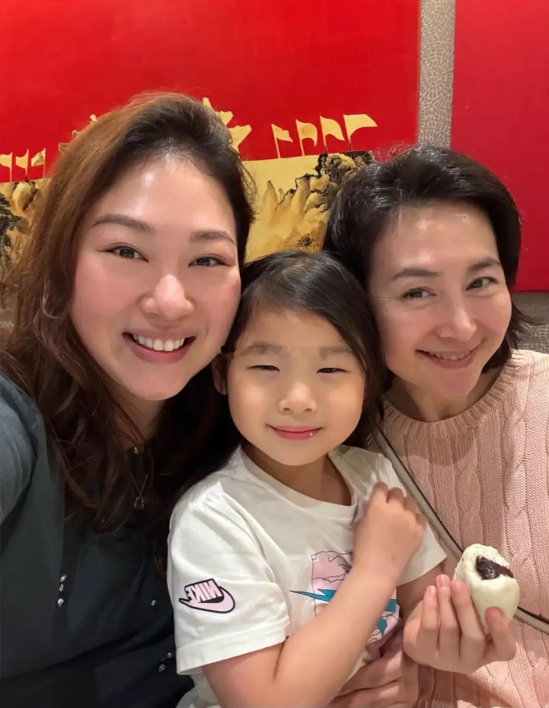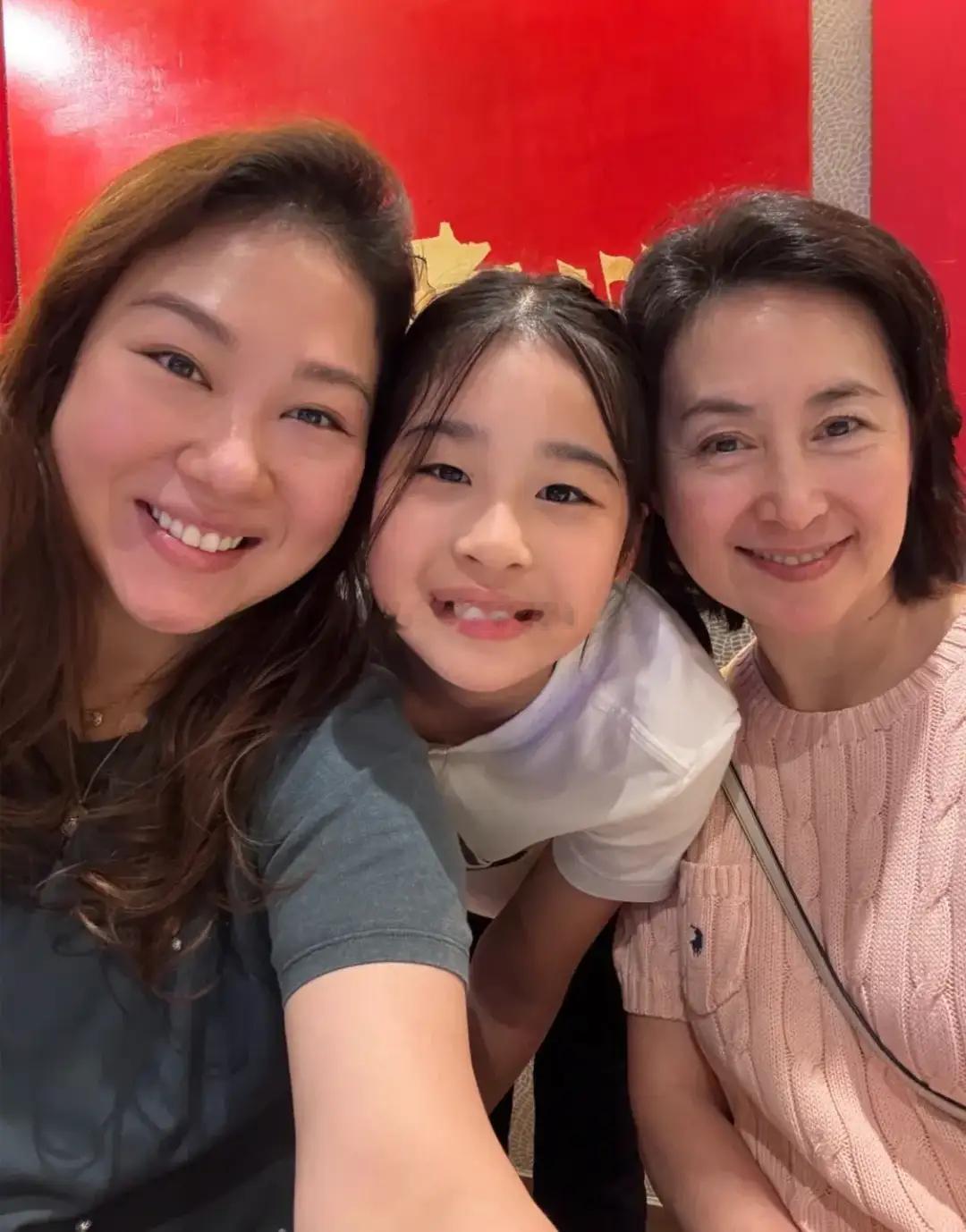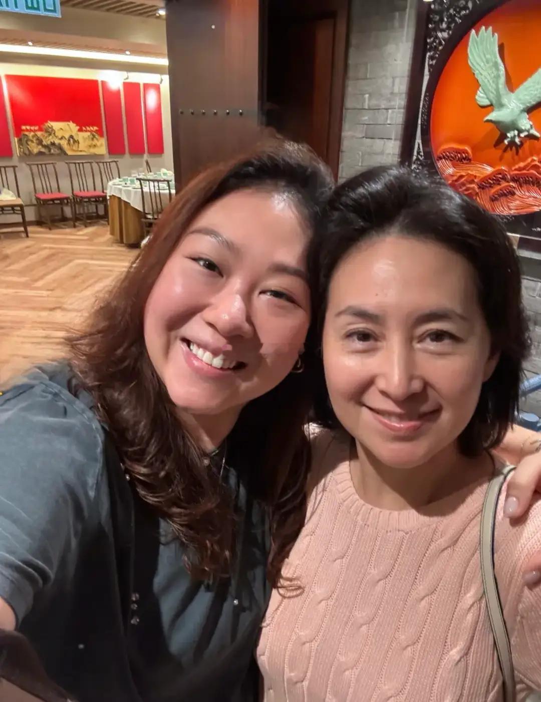 何超琼和干女儿曾昭仪一起聚餐,她身穿粉色拉夫劳伦针织衫,气色红润,脸上有雀斑,眼