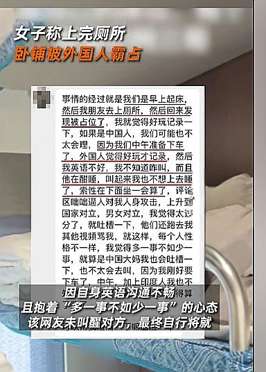 这就是某些外籍游客的素质。前两天,一女生和朋友坐火车去上海,俩人买的是卧铺。女生早上起床后和朋友去了一下卫生间,满打满算还没三分钟,回来卧铺就被一印度游客占了。女生见这个印度游客闭着眼睛,再加上自己的英语表达能力不是很好,想着多一事不如少一事,就没有跟他计较。 这个女生还是素质太好了。如果事情发生在我的身上,我素质低,我不会给他好脸,我指定得把他搞醒,扯下来。来游玩,欢迎,但是得守规矩,装睡没用。印度 占座