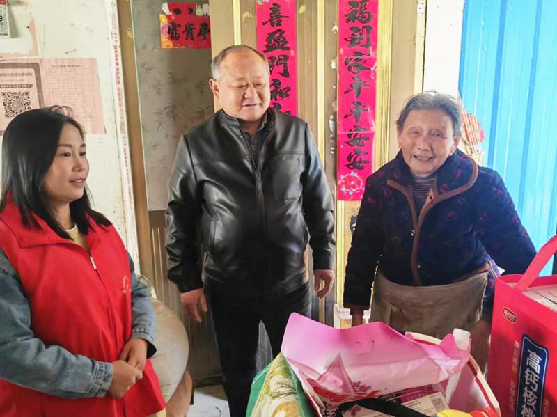 在高龄老人钱社华家中,杨信来详细询问其日常饮食、健康状况及生活需求,叮嘱家属要悉心照料老人起居,志愿者们主动为老人整理房间、检查用电安全。随后,来到周进兰老人家中,志愿者送上慰问品,老人连声感谢:“这些年多亏村里关照,心里暖和得很!”此次慰问活动除物资帮扶外,志愿者还建立“一对一”联络卡,后续将提供代购药品等常态化服务。