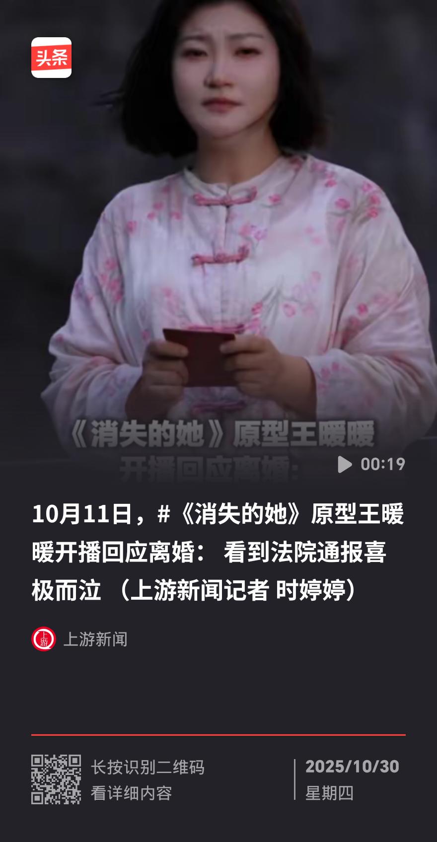 “消失的她”原型王暖暖终于离婚!前夫狱中演深情,6年拉锯藏这些关键 家人们!“消失的她” 原型王暖暖总算摆脱渣男了!2025 年 10 月 10 日,南京法院判她和俞晓冬离婚,还拿到 50 万赔偿,这场从 34 米悬崖开始的 6 年噩梦,终于有了结局。 回溯 2019 年,怀孕的王暖暖被俞晓冬推下泰国悬崖,17 处骨裂、孩子没了,俞晓冬还在崖边守 50 分钟确认她 “死透”。后来他装深情删手机、阻联系,幸好医生递纸条帮她报警。更气人的是,俞晓冬当初是骗婚 —— 隐瞒 500 万赌债,用诈骗套路追她,还曾想把她卖去缅北,发现她有钱才改主意骗保。 庭审时俞晓冬还演哭戏喊 “老婆我爱你,天天梦见你”,结果铁证下被判 33 年。可离婚更难,俞晓冬在泰国服刑,文书送达花 8 个月,按正常程序得等他 2056 年出狱。直到 2025 年 9 月,靠最高法协调才视频开庭,俞晓冬还敢要 3000 万补偿,好在法院没惯着,让他净身出户。 现在王暖暖带着新宝宝生活,还帮家暴受害者维权。俞晓冬在狱里写忏悔信装深情,她早不搭理了 —— 毕竟能从悬崖爬回来的女人,早把过去甩在身后了。王暖暖离婚案 王暖暖事件 王暖暖反家暴