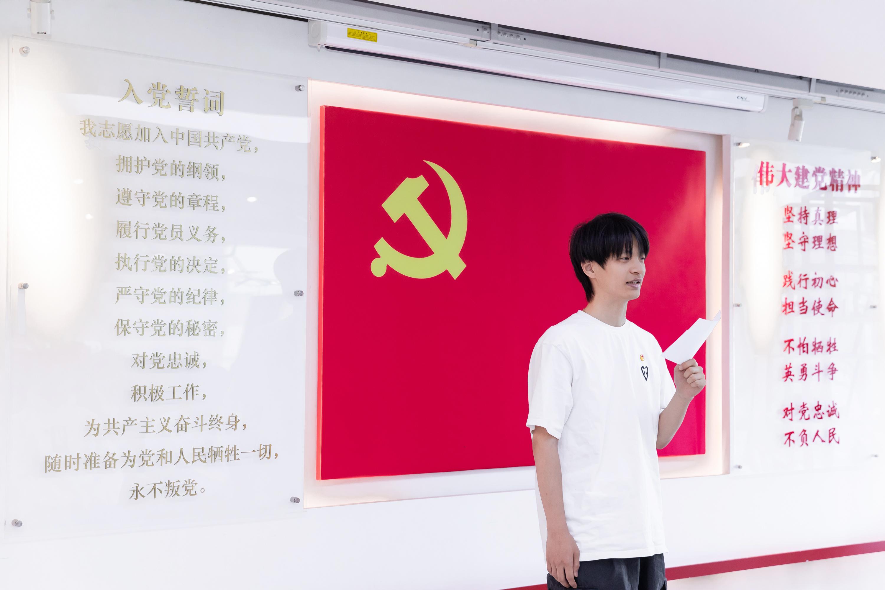 最后,在入党积极分子发言环节中,王森旭同志代表全体积极分子表达了自己内心的激动与向往。他表示,目睹庄严的入党仪式深受震撼,更加坚定了加入党组织的决心。未来他将继续加强理论学习,提高政治素养,提前以党员的标准严格要求自己,争取早日成为一名光荣的共产党员。