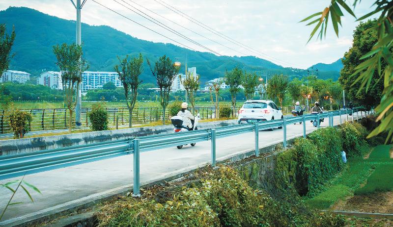 夜幕降临,一盏盏路灯照亮夜空,一道道防护栏守护安全。闸坝电站路段的改变,不仅保障了居民的出行路,更温暖了大家的心。