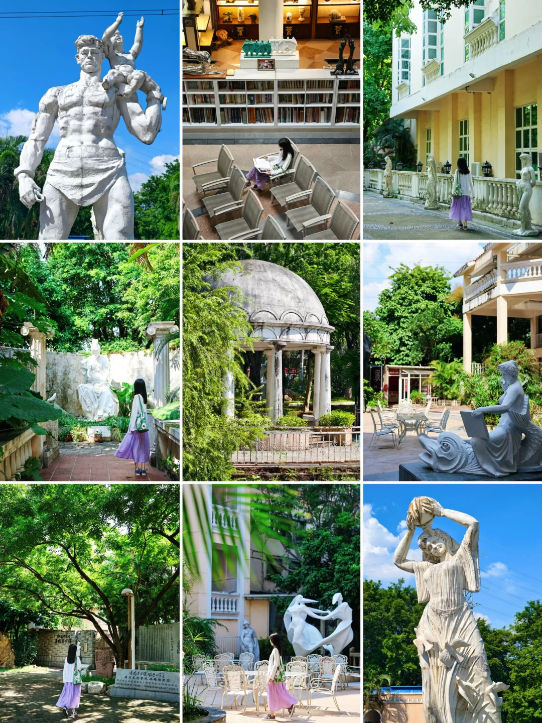 逛了一圈园区才发现,原来像《珠海渔女》、《开荒牛》、《艰苦岁月》等等这些赫赫有名的雕塑作品出自潘鹤先生之手,周末不妨来这里逛逛、感受艺术与自然的完美融合,拍照打卡也非常出片哦。