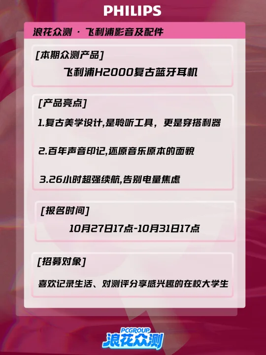 同学们注意!飞利浦百年庆遇上浪花众测宠粉活动🥳