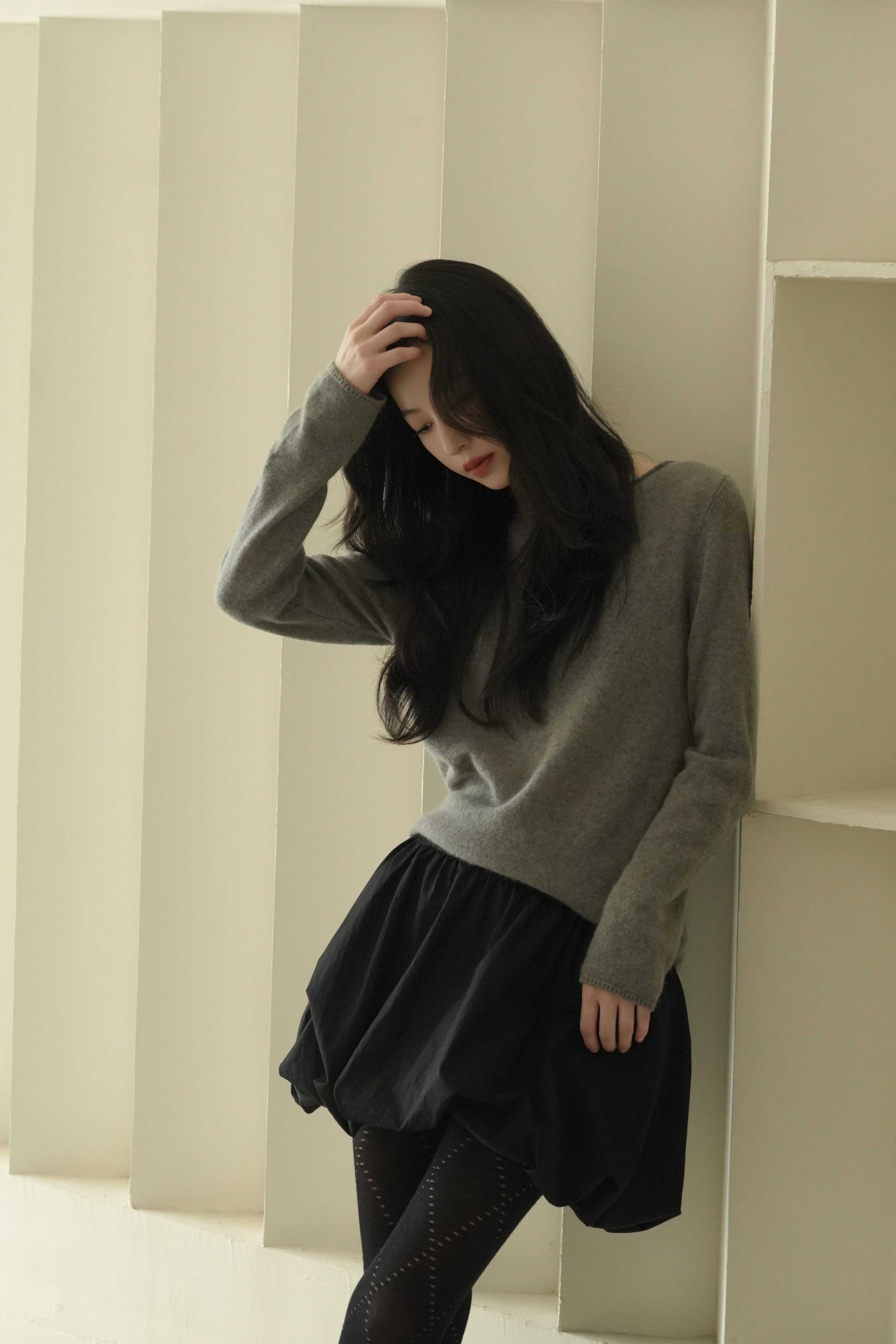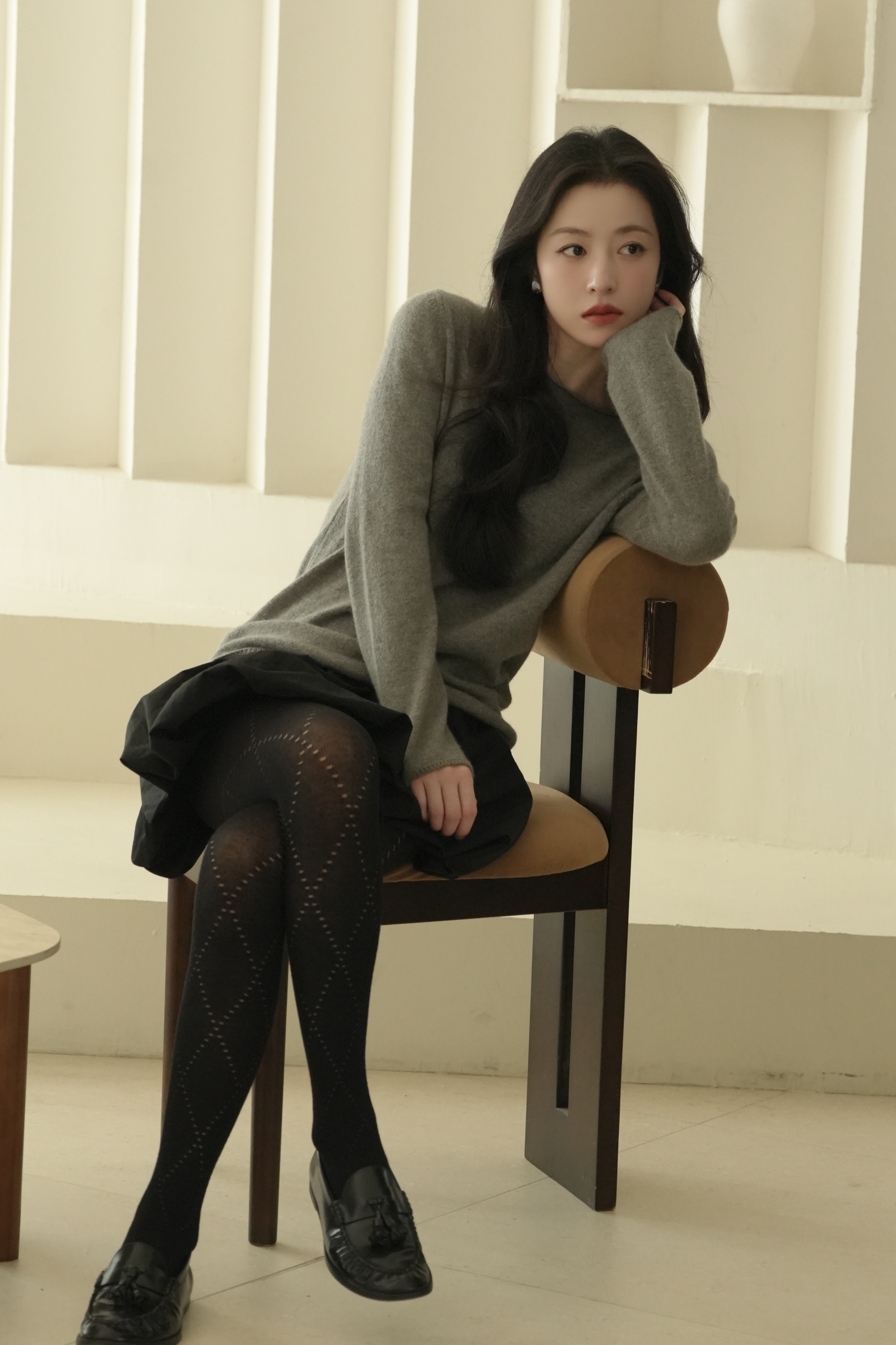 蓝色修身抽绳裙搭配灰色帆布鞋,简约又显身材,街头随性范儿,舒适与时尚并存,轻松穿