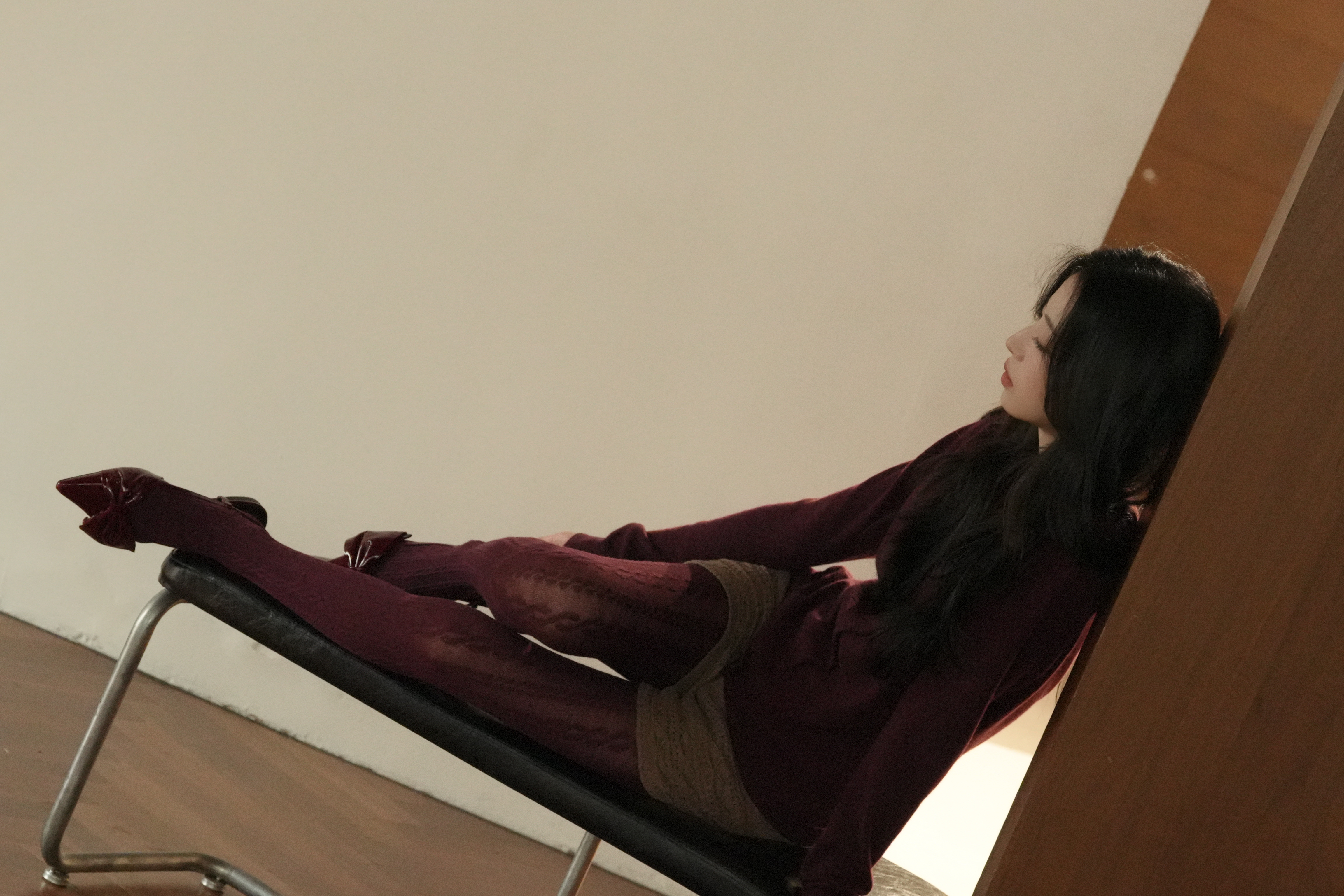 粉色开衫配绿色开衩裙,清新又显白,脚踩同色系人字拖,这配色和穿搭绝了,氛围感直接