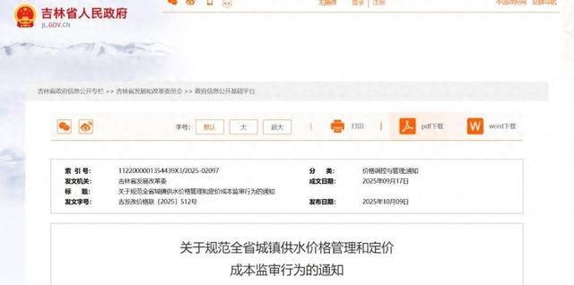 近日,吉林省人民政府网站发布《关于规范全省城镇供水价格管理和定价成本监审行为的通知》,详情如下: