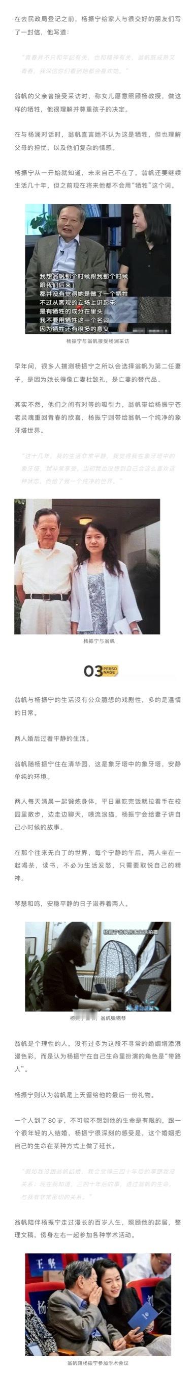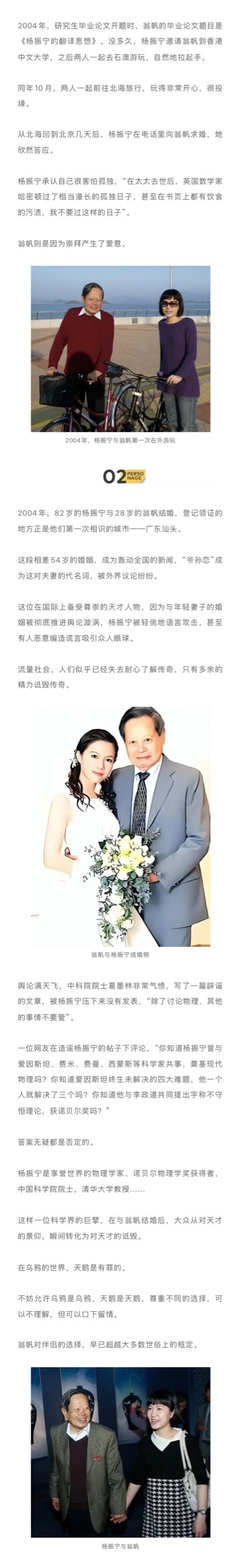 时隔21年,再回过头来看,翁帆的确如同杨振宁在世时所言,是上帝留给他的最后一份礼物,她则选择了一条人迹稀少的路。
