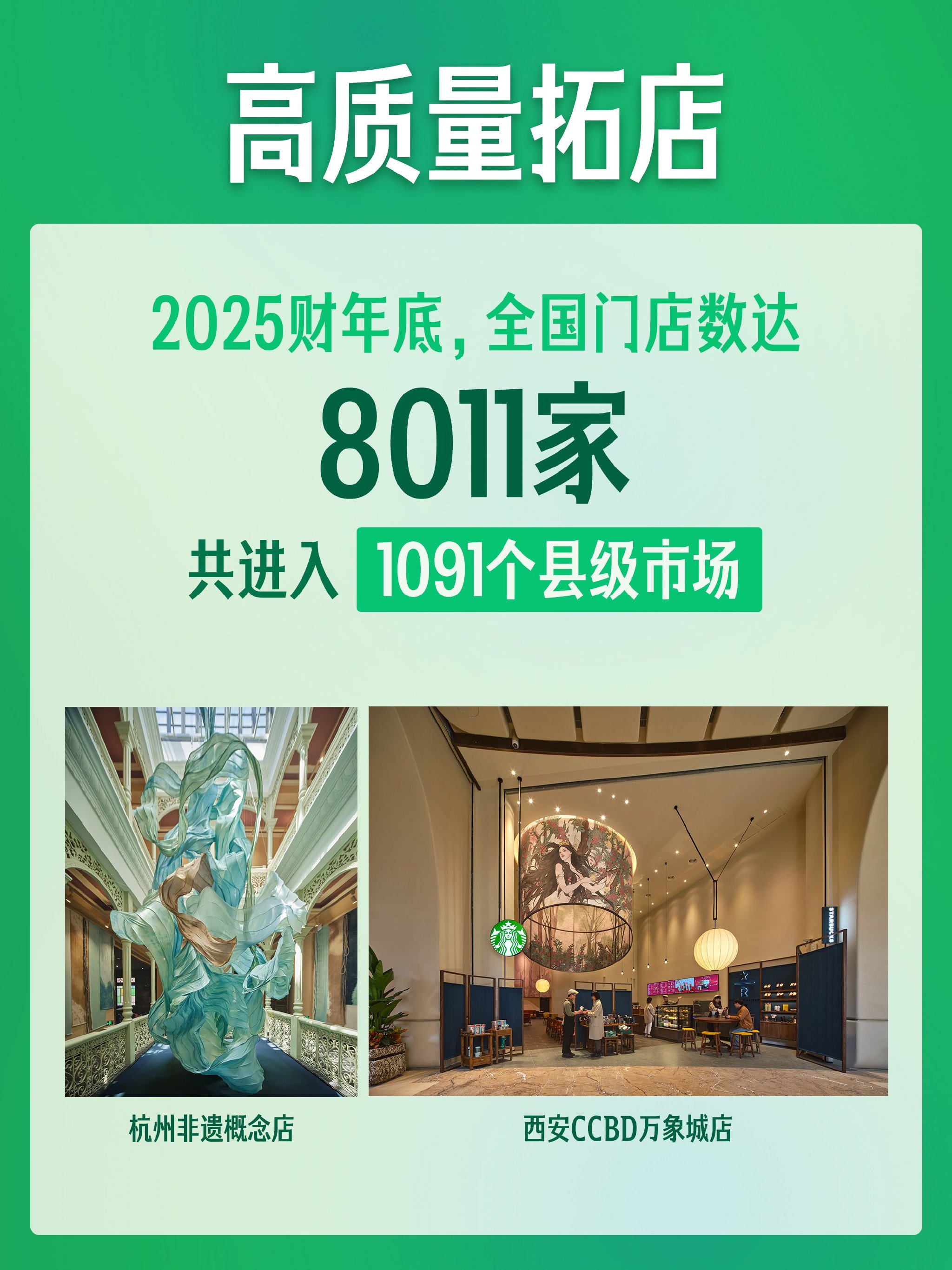 第四季度,星巴克中国新开出183家门店,新进入47个县级城市。2025财年全年净新增门店达415家,截至财年末,全国门店总数达8011家,覆盖1091个县级城市。包括杭州非遗概念店、黄山景区店、上海乐高乐园配套门店等特色门店的落地,持续强化星巴克“第三空间”与本地文化的深度融合。