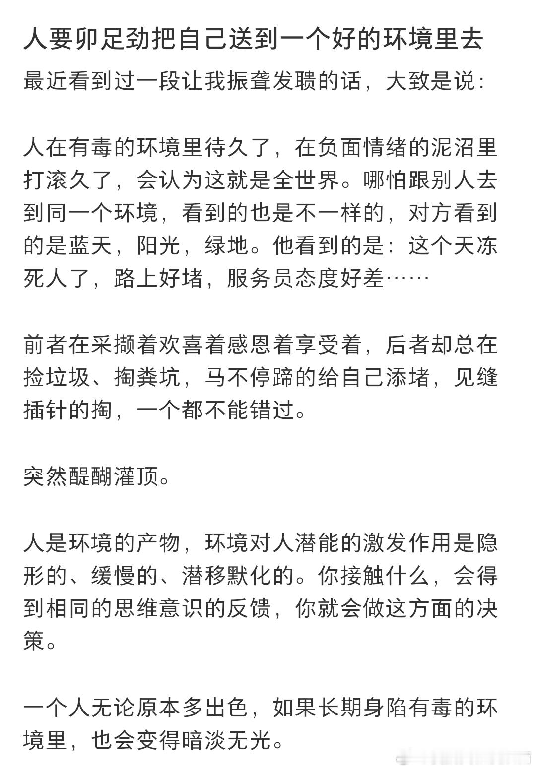 一定要铆足劲把自己送到好的环境中去