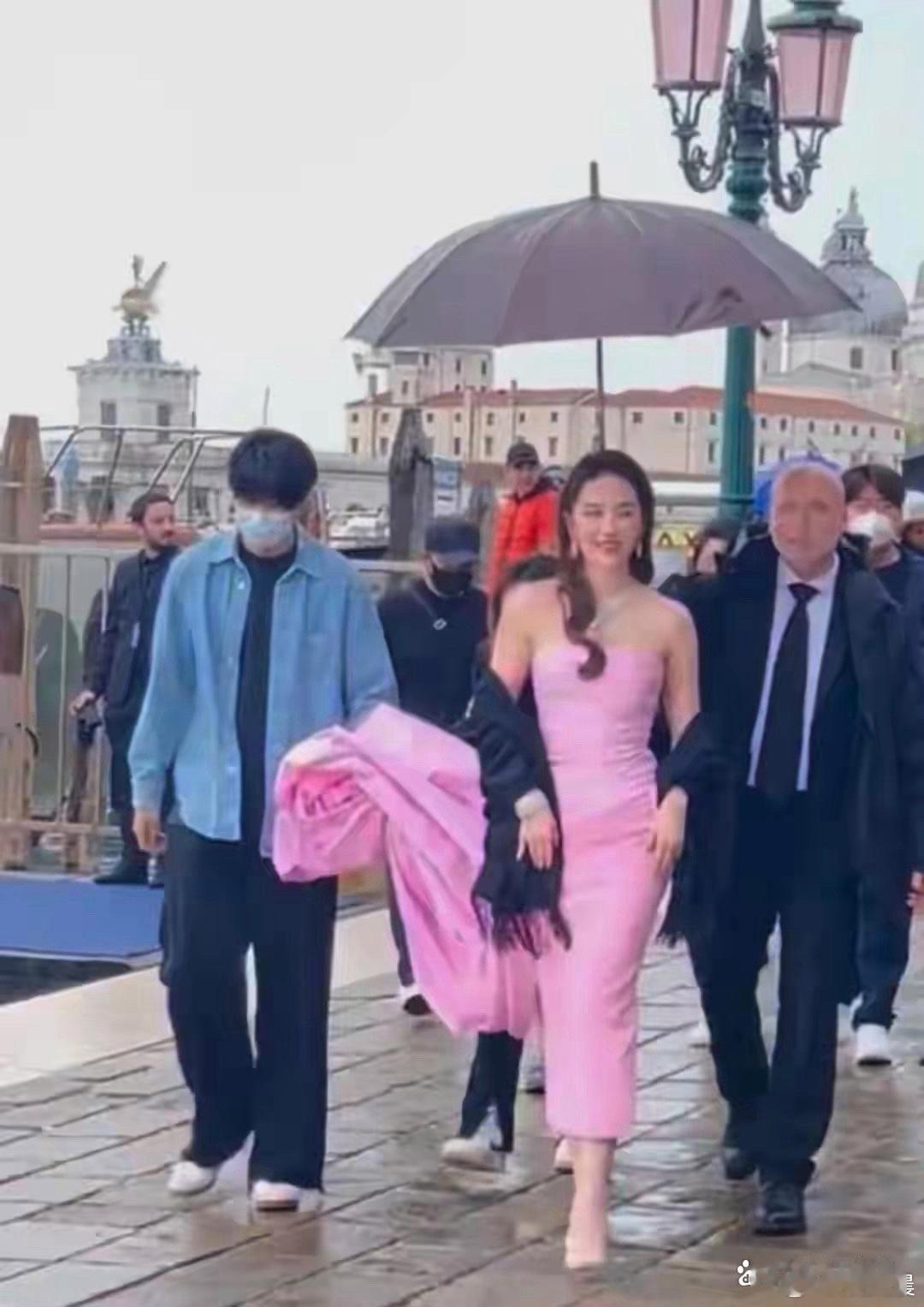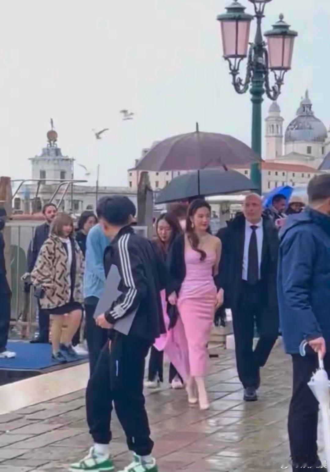 刘亦菲雨天出席活动,一袭粉色抹肩裙依旧绝美!珠圆玉润的模样尽显满满气血,雨中氛围