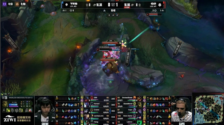 [16:19]TES中路推掉G2一塔,双方经济差距不大。