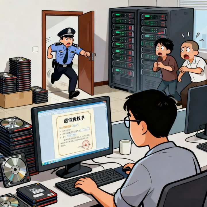 2024年6月21日凌晨,在平台的线下办公地点,业务员正盯着电脑屏幕回复客户咨询,屏幕上还显示着刚生成的虚假授权书,被庆元警方当场查获。