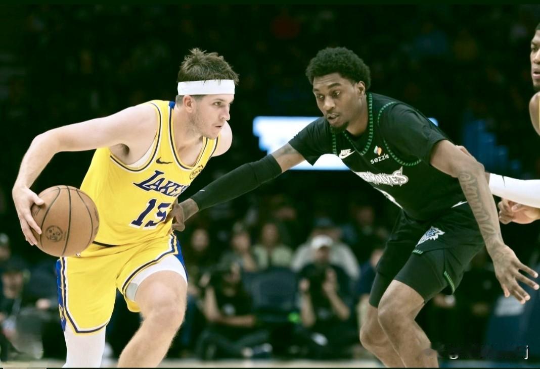 湖人与森林狼的这场对决,以湖人绝杀116-115告终。 其精彩程度堪称开季以来之最,尽管两队实力或许不算顶尖,这场“菜鸡互啄”却着实令球迷们心跳加速,刺激非常。 看完整场就感觉里夫斯真是把球队扛出会议室——三分11中3铁到发指,但最后6秒单挑麦丹的抛投直接把战术板烧成灰。 这哥们儿现在带二阵容都能玩出花,单场16助攻创生涯新高,连着40+10的数据让管理层的2亿续约合同显得很值。 拉拉维亚第三节突然变身接盘侠倒是意外,三分6中5的准星像给湖人球迷喂了速效救心丸。 不过文森特要是再不回来,他的首发位置可能真要保不住。 艾顿对位戈贝尔时硬得不像话,17+10两双数据里有一半是顶着法国高塔打成2+1,比在太阳时期主动多了。 当范德彪于底角投出一记三不沾时,哈姆内心或许瞬间涌起强烈冲动,恨不能即刻将其交易出去,以解此刻的尴尬与无奈。 好在最后四个前场篮板,为其续得一丝喘息之机。这般表现,不禁令人忆起他初入湖人时,曾被盛赞的防守预判能力,着实令人印象深刻。 在森林狼这边,末节兰德尔突然攻势凌厉,他连续四次以背打之技对战八村垒,均成功得分。这波强势表现令湖人局势岌岌可危,比赛走向险些就此改写。 但当康利关键时刻两罚一中,狼队还是逃不过被里夫斯支配的恐惧。 个人觉得湖人想走得更远还得解决第四节体能黑洞,而狼队需要换个能站桩护框的内线替补。