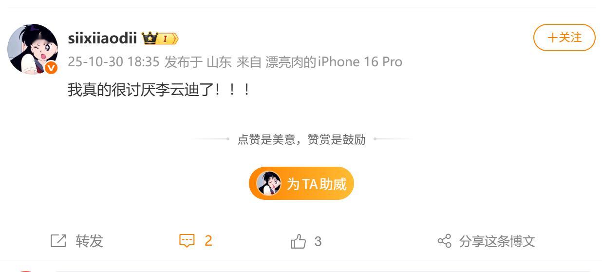 李汶翰前女友喊话李云迪 李汶翰前女友司晓迪发博喊话李云迪[哆啦A梦害怕]称被带到酒店,趁她吃了 安 眠 药,做了龌龊勾当,等在联系李云迪的时候已经被拉黑了……