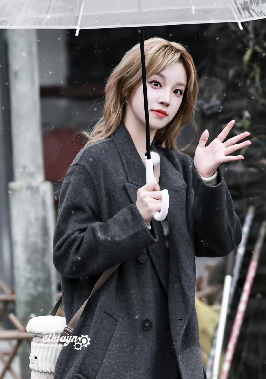 宋雨琦大衣金发知性风宋雨琦在西藏林芝参与节目录制时,以一袭灰色大衣搭配金色卷发亮相雪山脚下。简约剪裁与自然风光形成冷暖交融的美学意境,垂坠质感与慵懒卷发勾勒出知性从容的新时代青年形象。