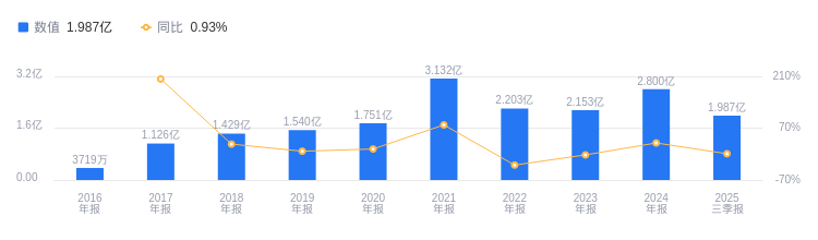 偿债能力方面,2025年三季度巴比食品资产负债率为19.34%,低于去年同期的20.81%,远低于行业平均的36.07%,显示出良好的偿债能力。从盈利能力看,当期毛利率为28.01%,高于去年同期的26.40%,且高于行业平均的21.98%,盈利能力较强。