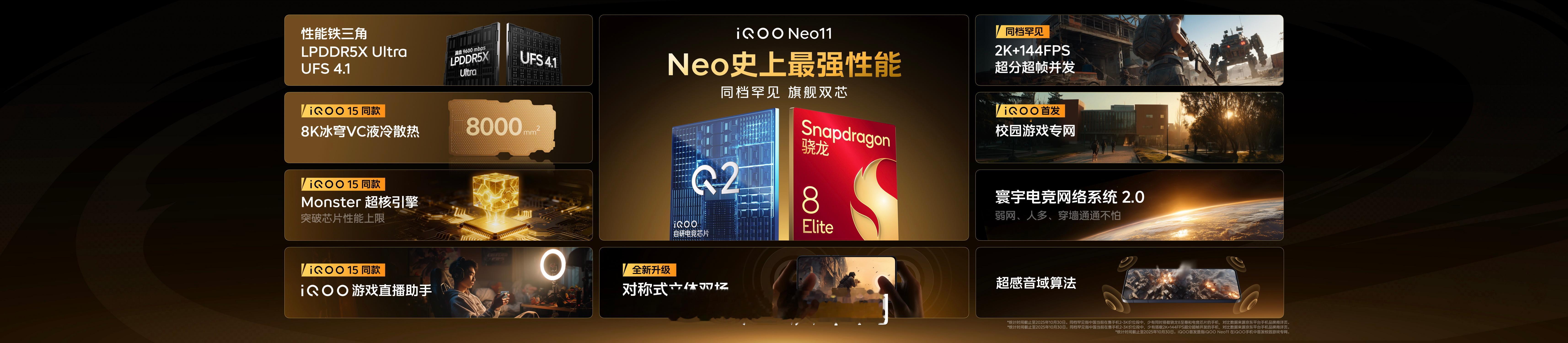 2599 元起,“一机制胜”iQOO Neo11 今日正式发布并开售,凭借“旗舰电竞双芯”、旗舰同款 Monster 超核引擎和行业领先的2K 144Hz 珠峰屏等强悍配置,与旗舰 iQOO 15 组成“性能大小王”,会是一款非常不错的性价比之选~
