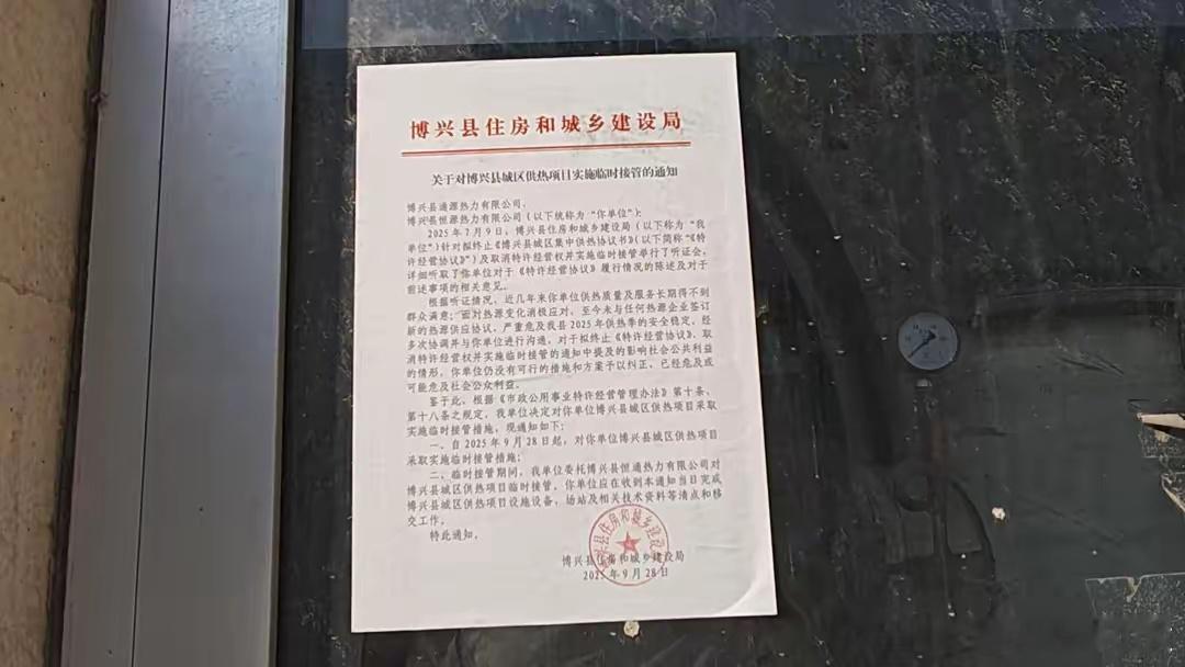2025年6月23日,博兴县住建局再次下发《关于拟终止(特许经营协议)取消特许经营权并实施临时接管的通知》。当天,博兴县住建局又下发《听证通知书》,称将于7月9日举行听证会,就拟终止供热协议、取消特许经营权、采取临时接管措施举行听证。