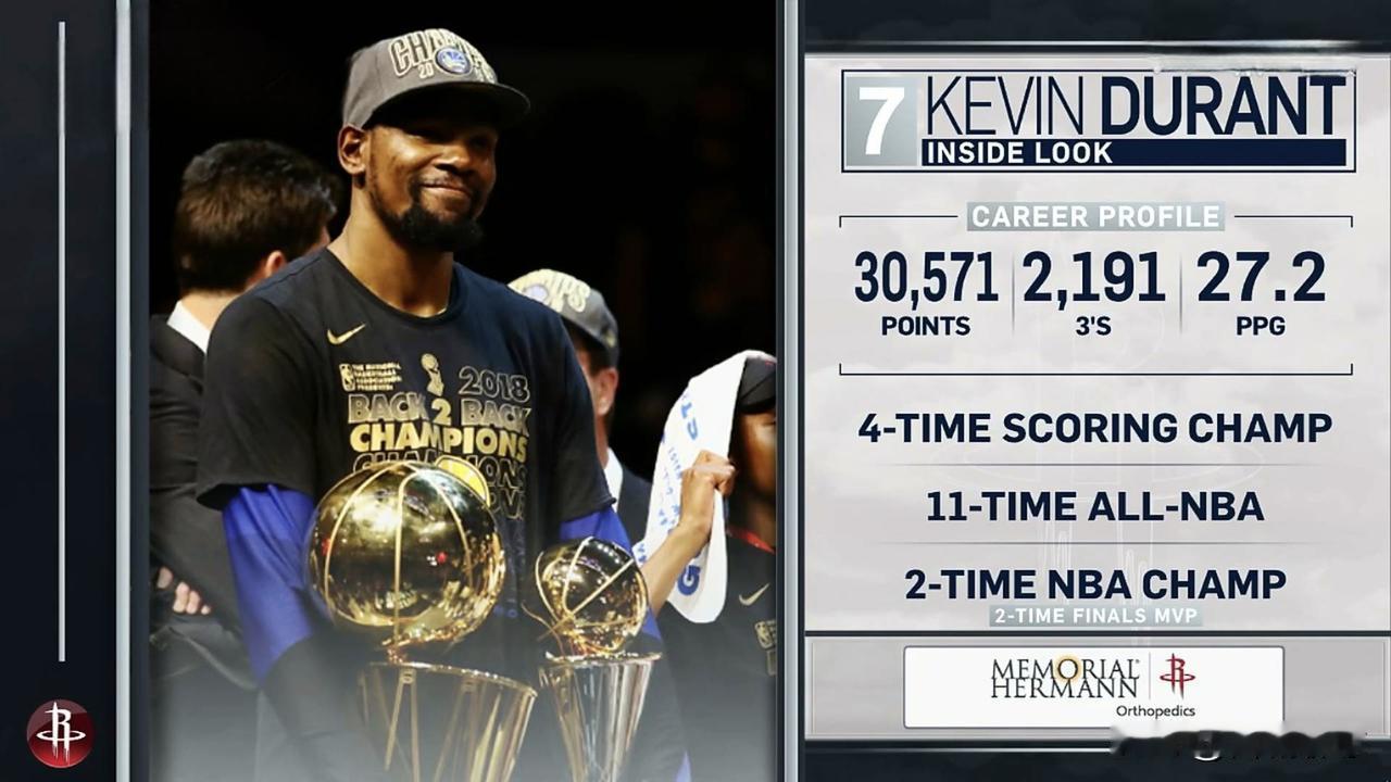 火箭就缺少杜兰特这样可靠的得分手?火箭记者Bradeaux更新社媒,统计了杜兰特