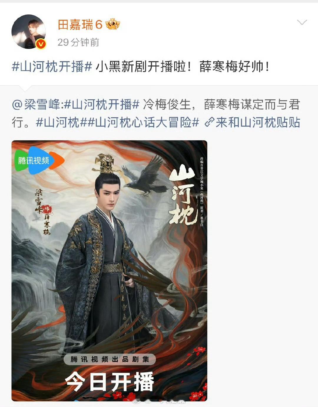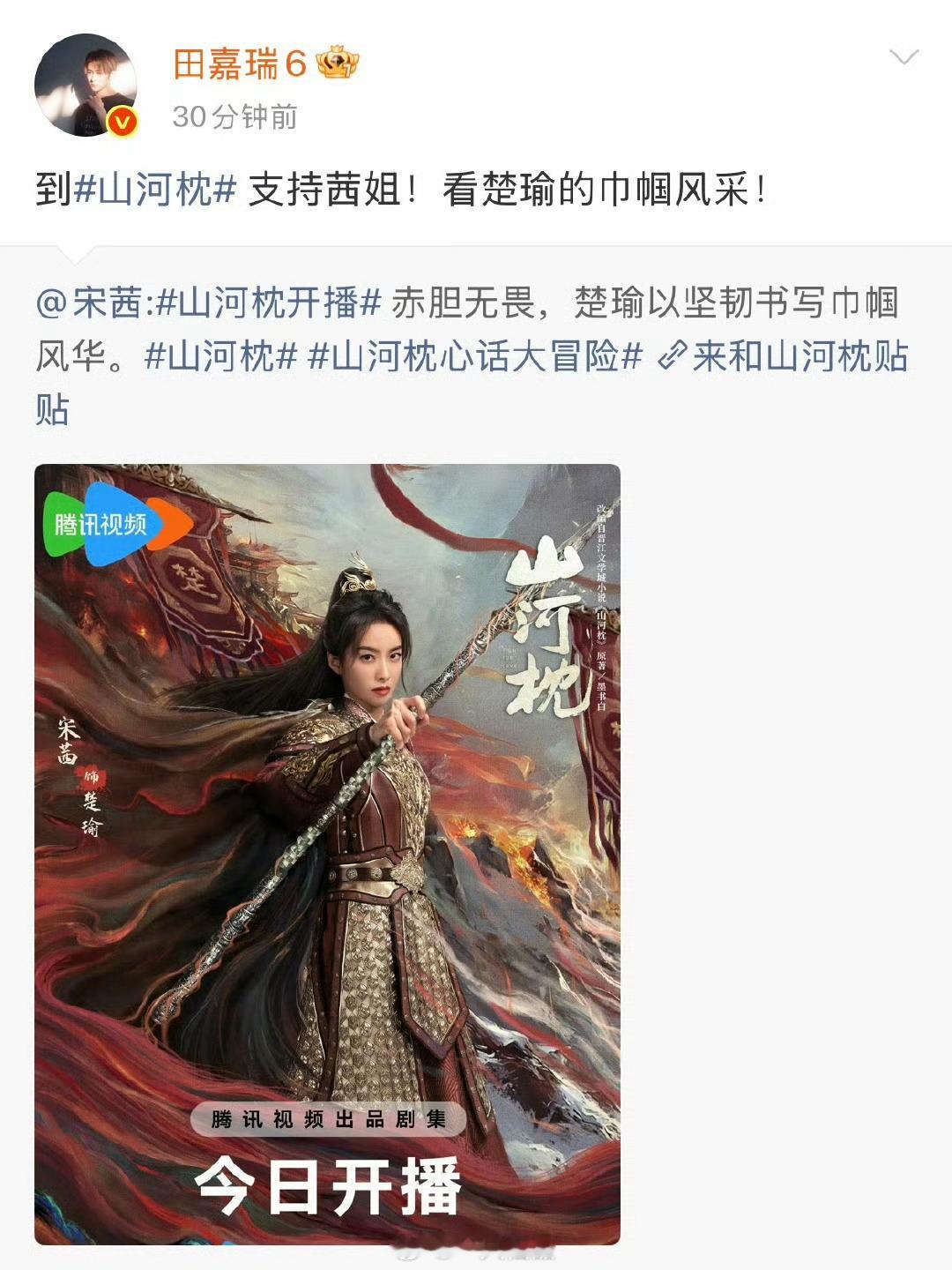 田嘉瑞给山河枕云包场1000座,又是转发这样心地善良人帅心善优秀的演员大家怎么能