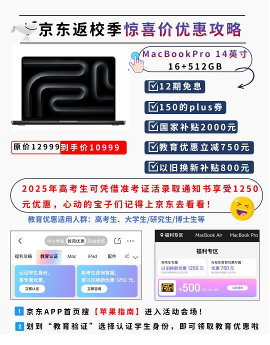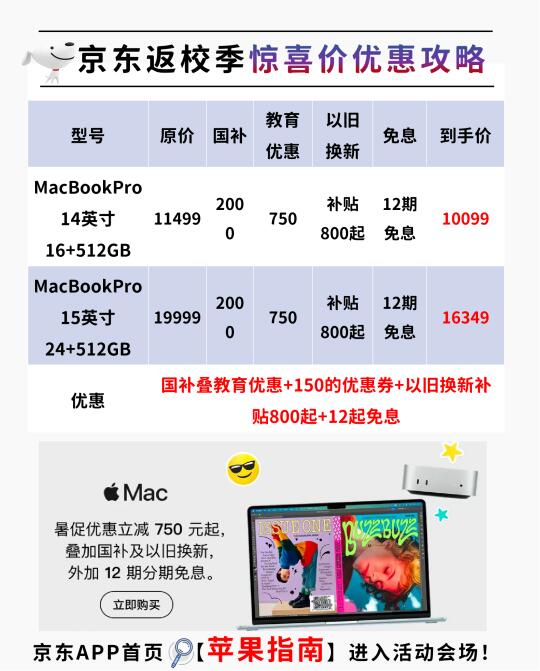 很多宝子在等的 Mac 暑期返校季优惠来啦!今年的优惠力度堪称空前,尤其是京东平台,教育优惠叠国补真的香!
