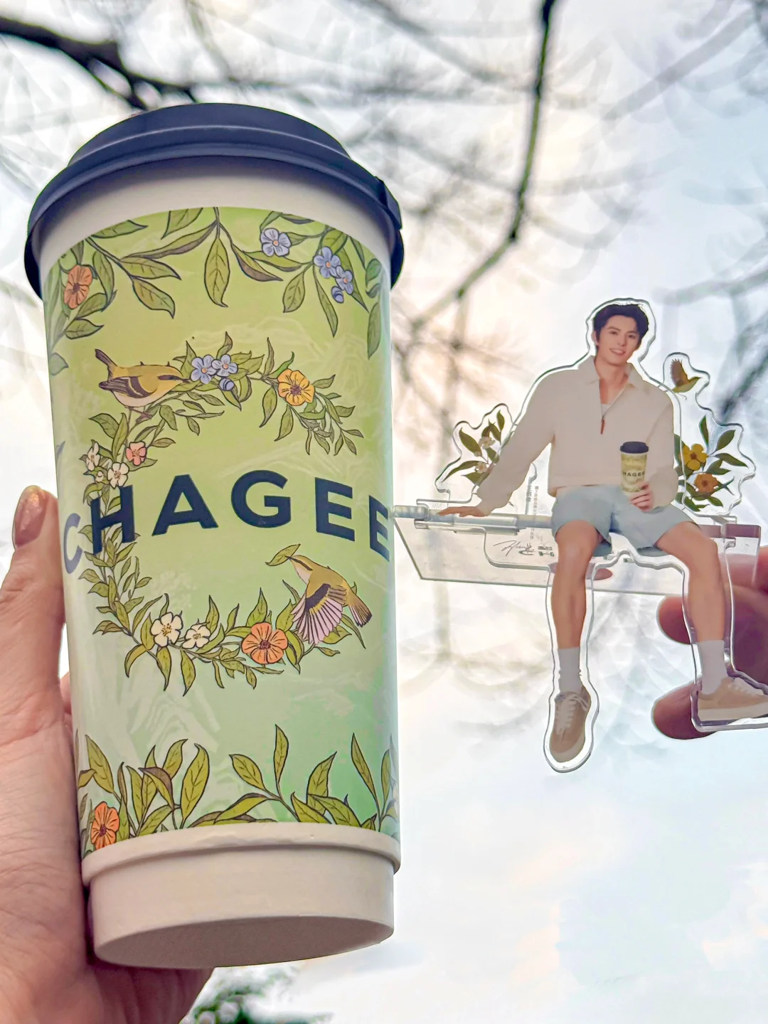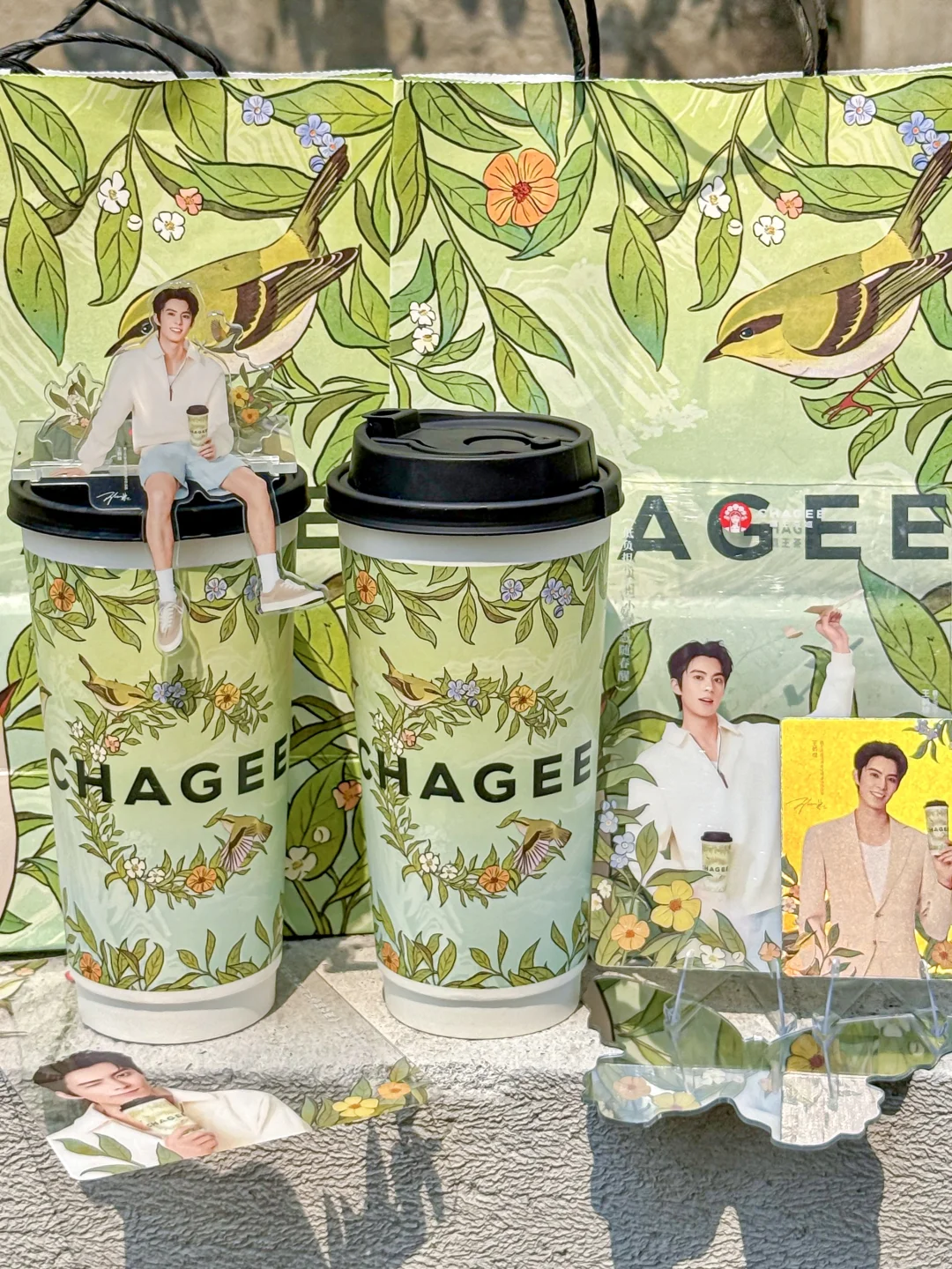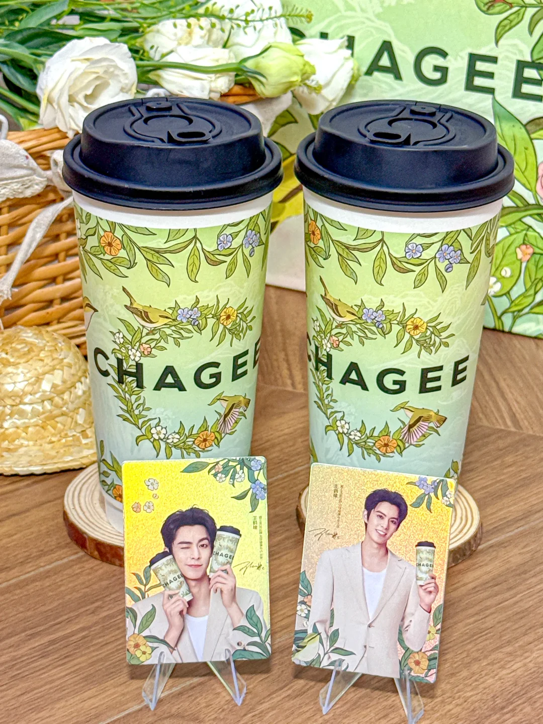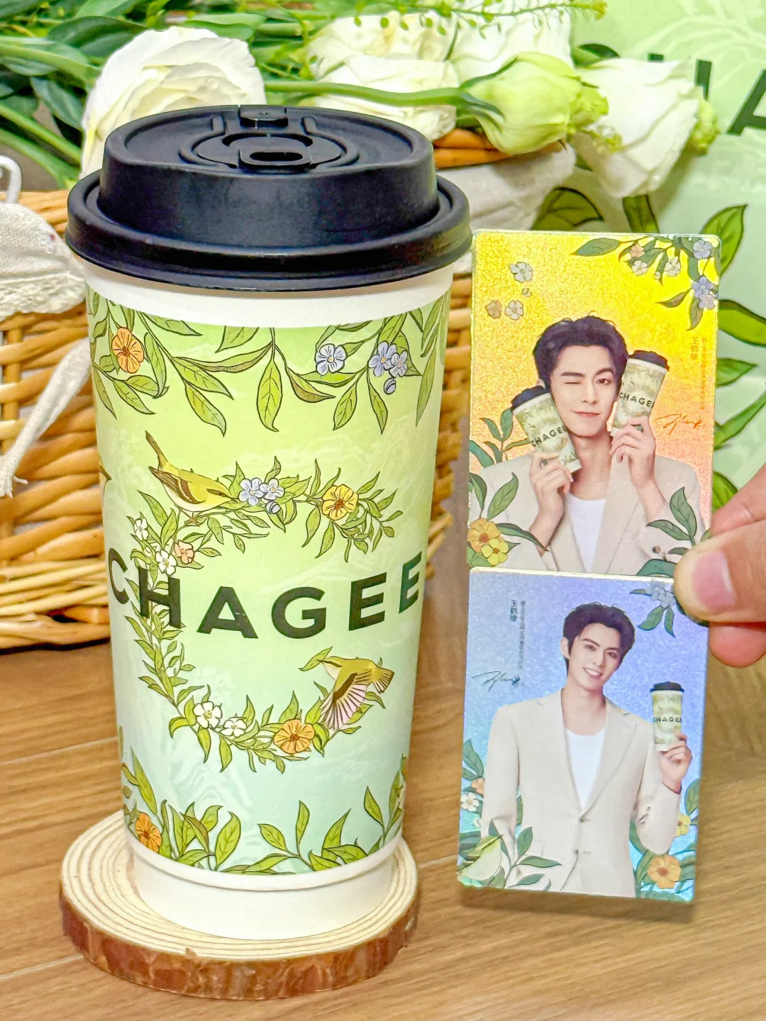 含棣量超标。。追星女孩狠狠心动了!!! 买霸王茶姬醒时春山套餐就可以get王鹤棣周边!! 有小卡、透卡、立牌、折页贴纸! 质感是真的好啊啊!!全套All in的幸福谁懂!! 醒时春山也吼吼喝!!龙井香好清新~ 每一口都是春天的味道!