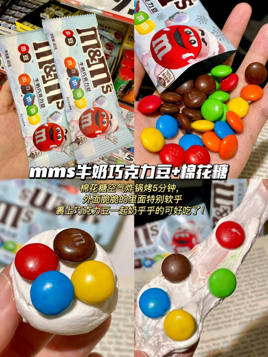 棉花糖放空气炸锅烤5分钟,撒上巧克力豆!奶呼呼的好看又好吃