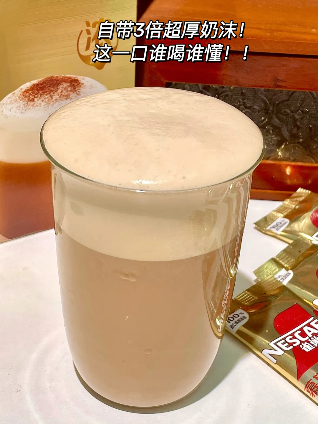 第一口一定要先喝上面的泡沫!3倍超厚的奶沫,入口像慕斯般贼丝滑绵密😌~