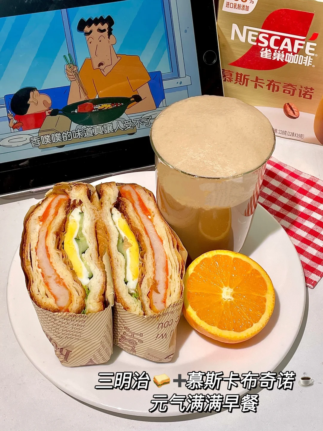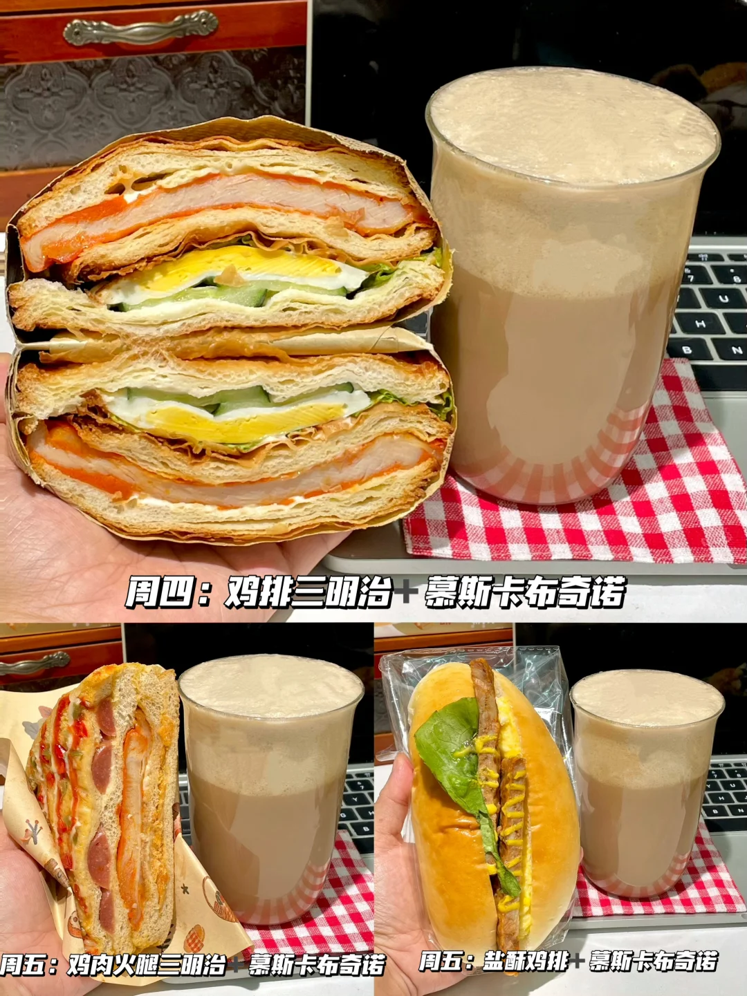 4⃣️周四:鸡排三明治+慕斯卡布奇诺