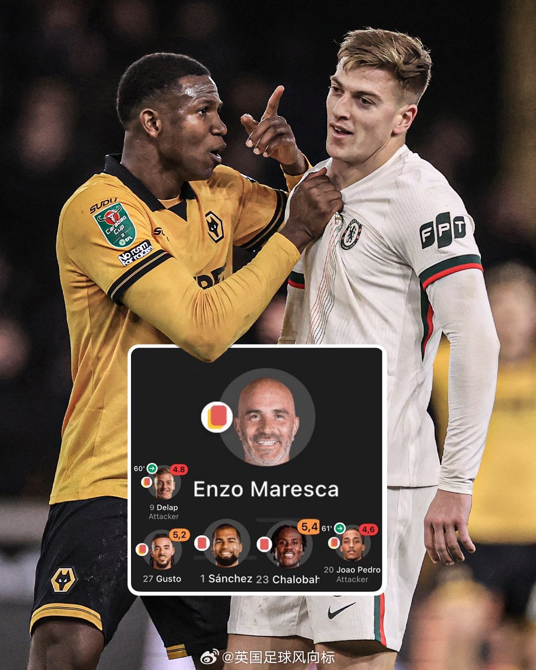 10月29日,联赛杯,狼队3比4切尔西,中锋德拉普“两黄变一红”被罚下场