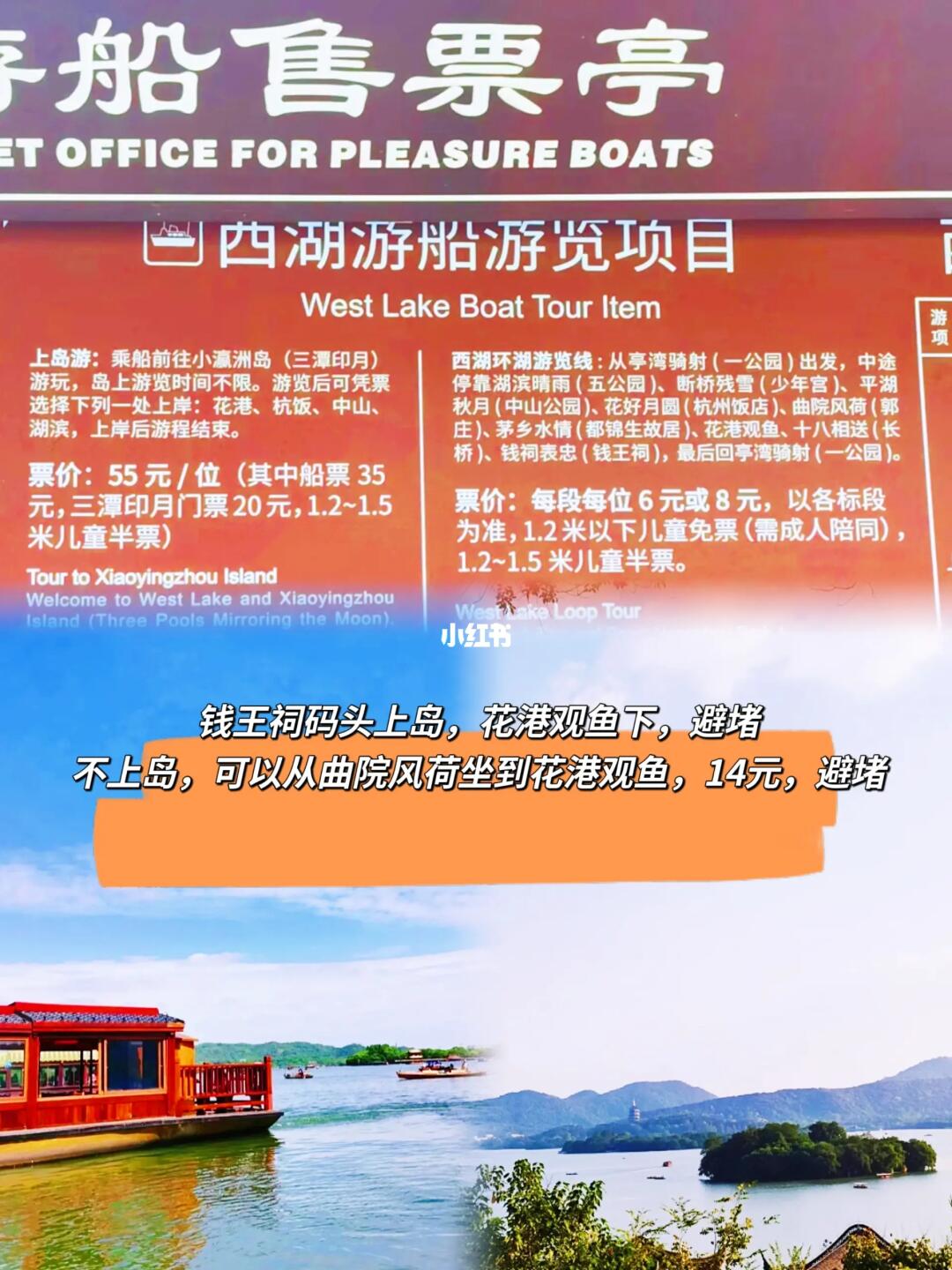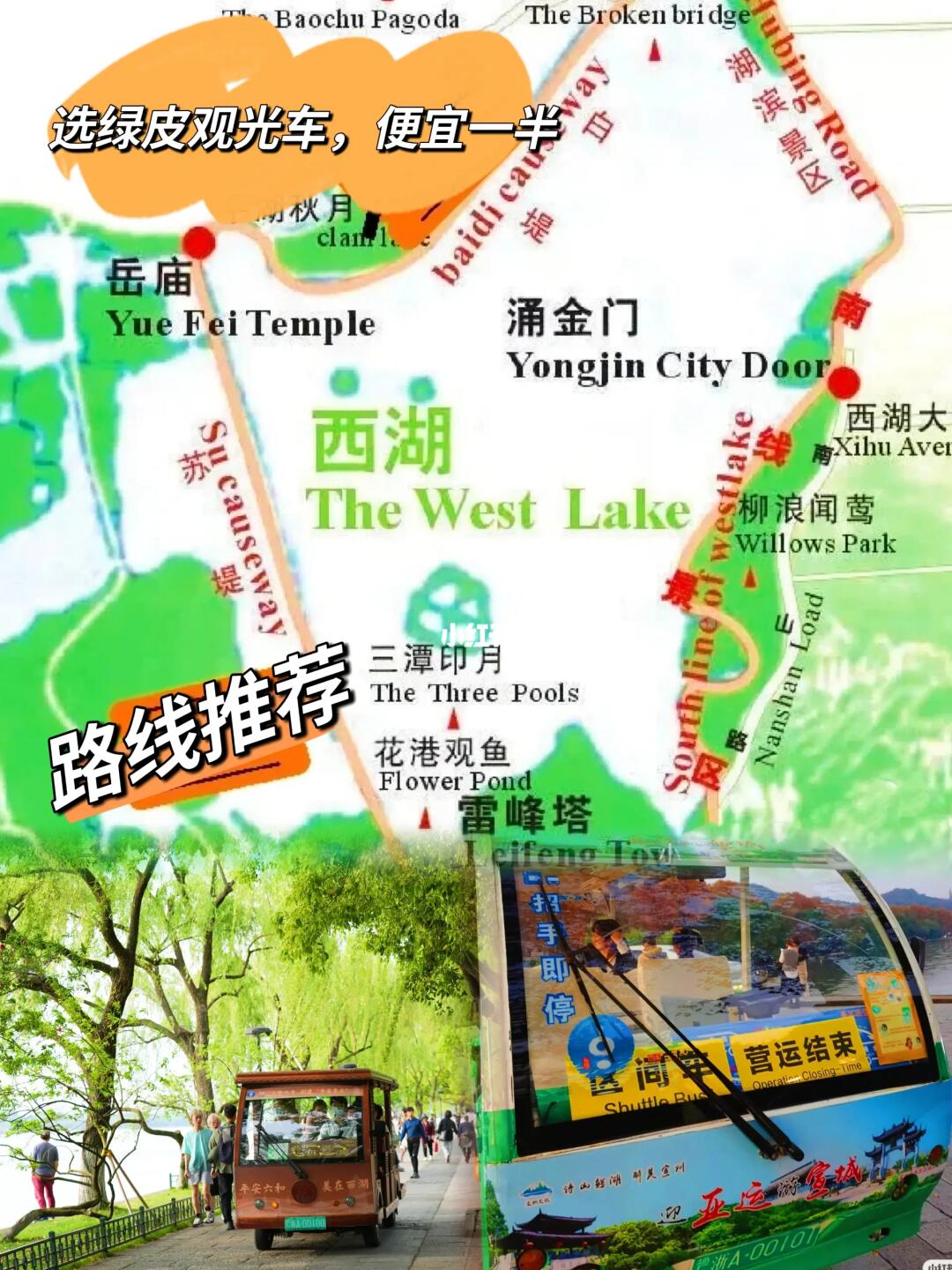 1📍路线结合了西湖游船、观光车,徒步,不用走断腿,就可以轻松玩一圈,欣赏西湖美景