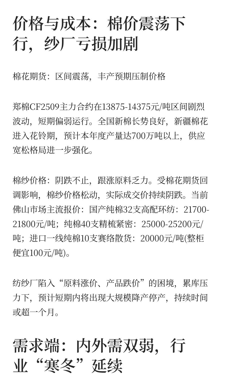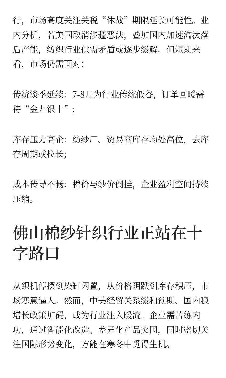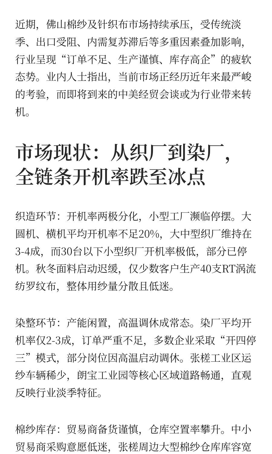 佛山棉纱针织行情低迷:订单萎缩、开机率低
