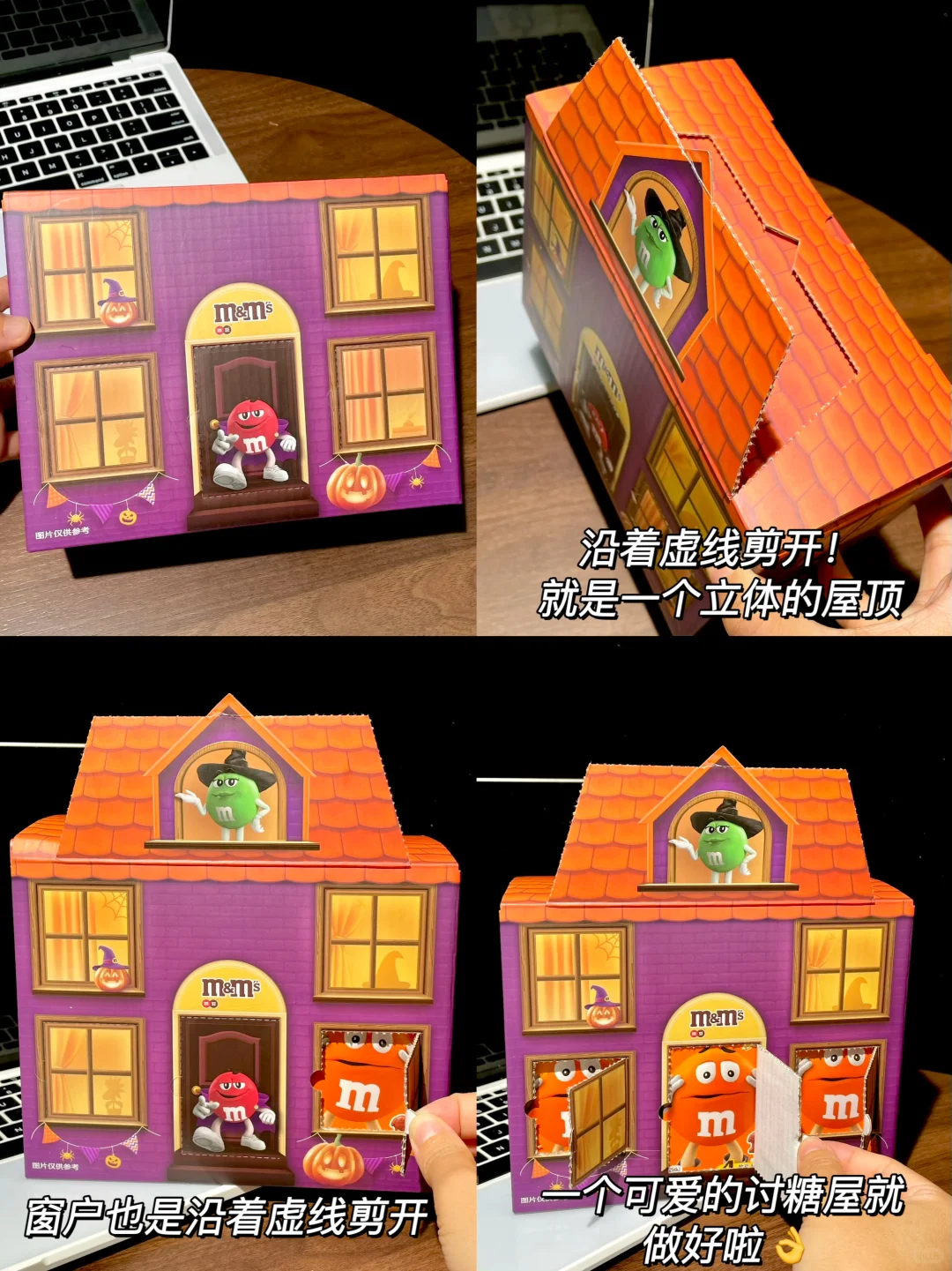 这不万圣节快到了,让我看看谁还没有拥有这么可爱的“讨糖屋” m豆万圣节糖果屋太拿捏人了~ 糖果屋形状的小房子好可爱,把顶盖打开就是一个立体的房子🏠 最好玩的是窗户可以打开,里面能看到豆人,造型可爱鼠啦! 而且里面还有牛奶巧克力豆和巧克力棒,主打一个好吃又好玩,直接氛围拉满🥰!! 我已经开始期待提着它去万圣节讨糖,回头率肯定百分百..... 快让你的好闺闺给你拿下这个万圣节糖果屋!! M豆MMS万圣节糖果屋万圣节礼物万圣节不给糖就捣乱M豆万圣节糖果