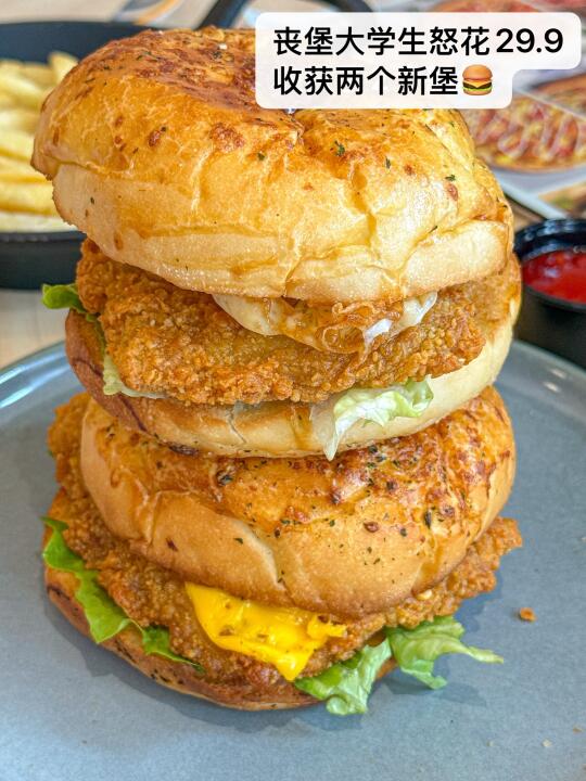 然而,生活总要继续。丧堡的大学生很快从悲伤中走出,在泪水中,他看到了汉堡29.9元2件的活动,决定化悲愤为食欲,一个人吃两个汉堡,用美食的力量治愈心灵。