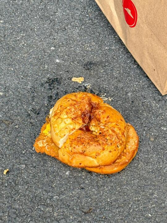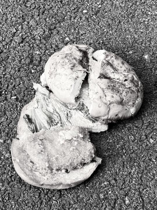 今天下午3时15分,一份必胜客黄金三脆多汁鸡堡经过0元试吃通道,被送到一名粗心大学生手中。在返回新家途中,不慎被摔到地下,被路过的一辆电动车碾压,导致浑身粉碎性骨折,其脆香的比萨面包瞬间化为碎片,金黄的鸡排也散落四方,如同一场悲剧的落幕。