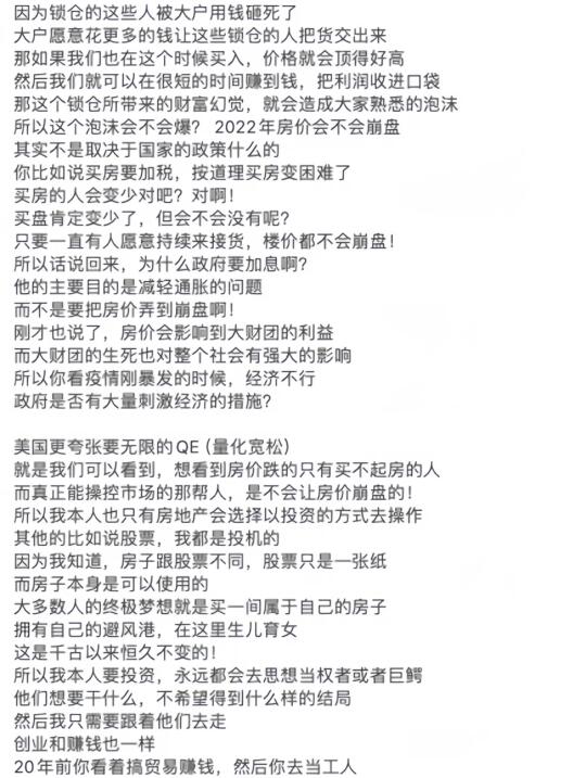 🍁虽然说我不认为房价会崩盘,但有一点说的不错