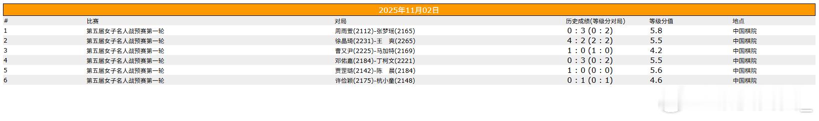 女子名人预赛第一轮