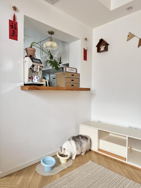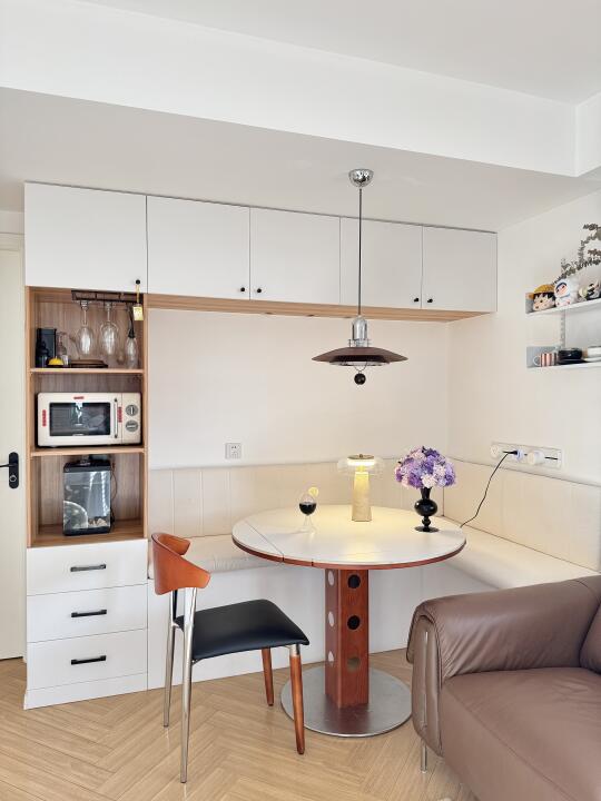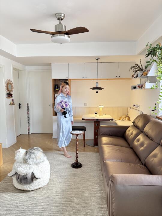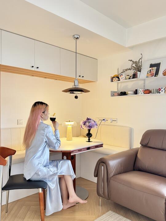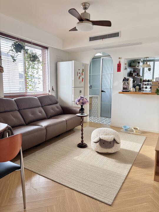 邻居听说我家装修的很好看,过来参观 结果举报到物业, 说我开放式厨房有安全隐患 拜托~我是经过物业和燃气公司同意的, 如果真的不安全,也不会给我开通燃气啊 无语…… 📌坐标上海 📍两室一厅,一厨一卫 ✨开间4.5m*3.3m,14.85平 ✨客厅约9平米,沙发2.5m,地毯1.6*2.4m ✨餐厅约6平米,餐桌1.1m