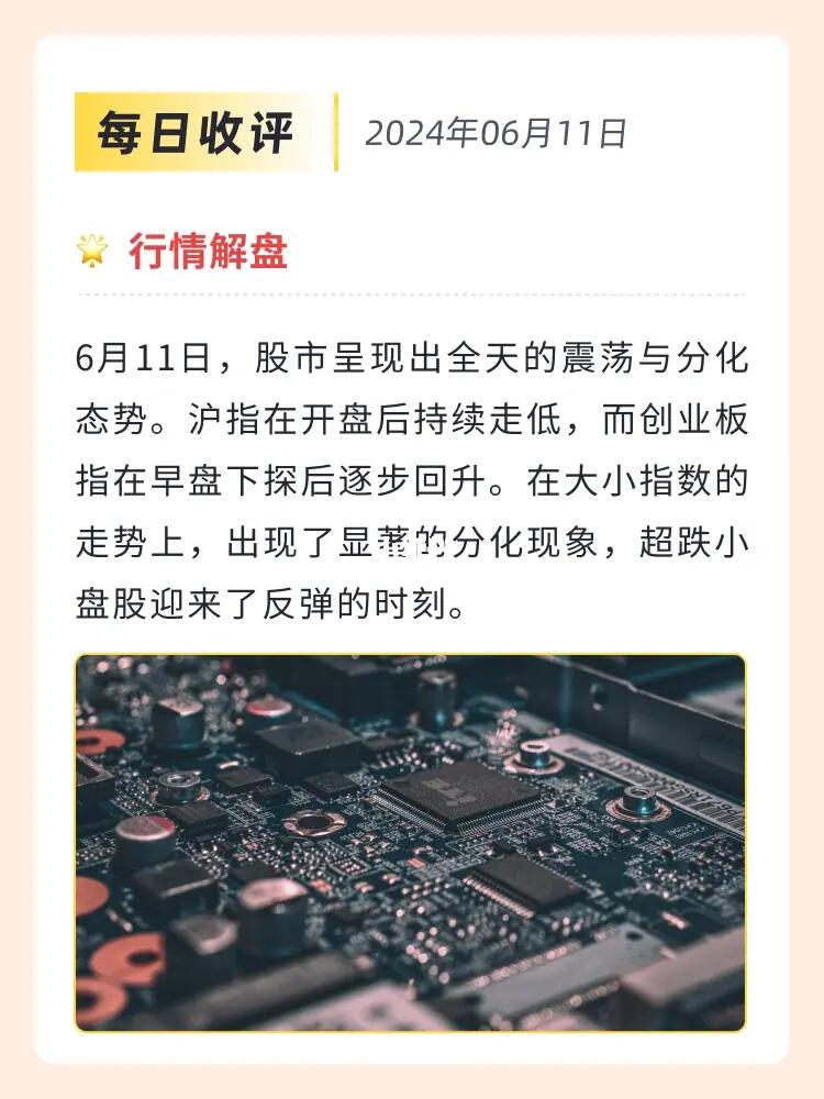 👉 6月11日,股市呈现出全天的震荡与分化态势。沪指在开盘后持续走低,而创业板指在早盘下探后逐步回升。在大小指数的走势上,出现了显著的分化现象,超跌小盘股迎来了反弹的时刻。