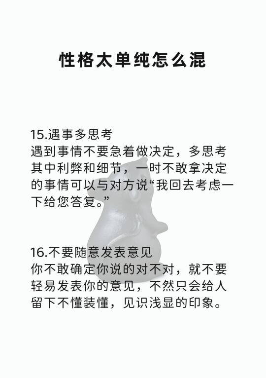 在这个复杂多变的社会,性格单纯的你是否经常感到力不从心?😩 . 👫人际交往中,你也可能因为太过直白而得罪人。 不是每个人都喜欢听真话,你的无心之言,可能就让别人记恨在心。😡 . 但别忘了,单纯不是错,只是需要一点智慧来护航。✨ 学会保护自己,学会分辨真假,单纯的你依然可以活出自己的精彩!🌟 . 快来说说,你是如何平衡单纯与世故的吧!💬 .