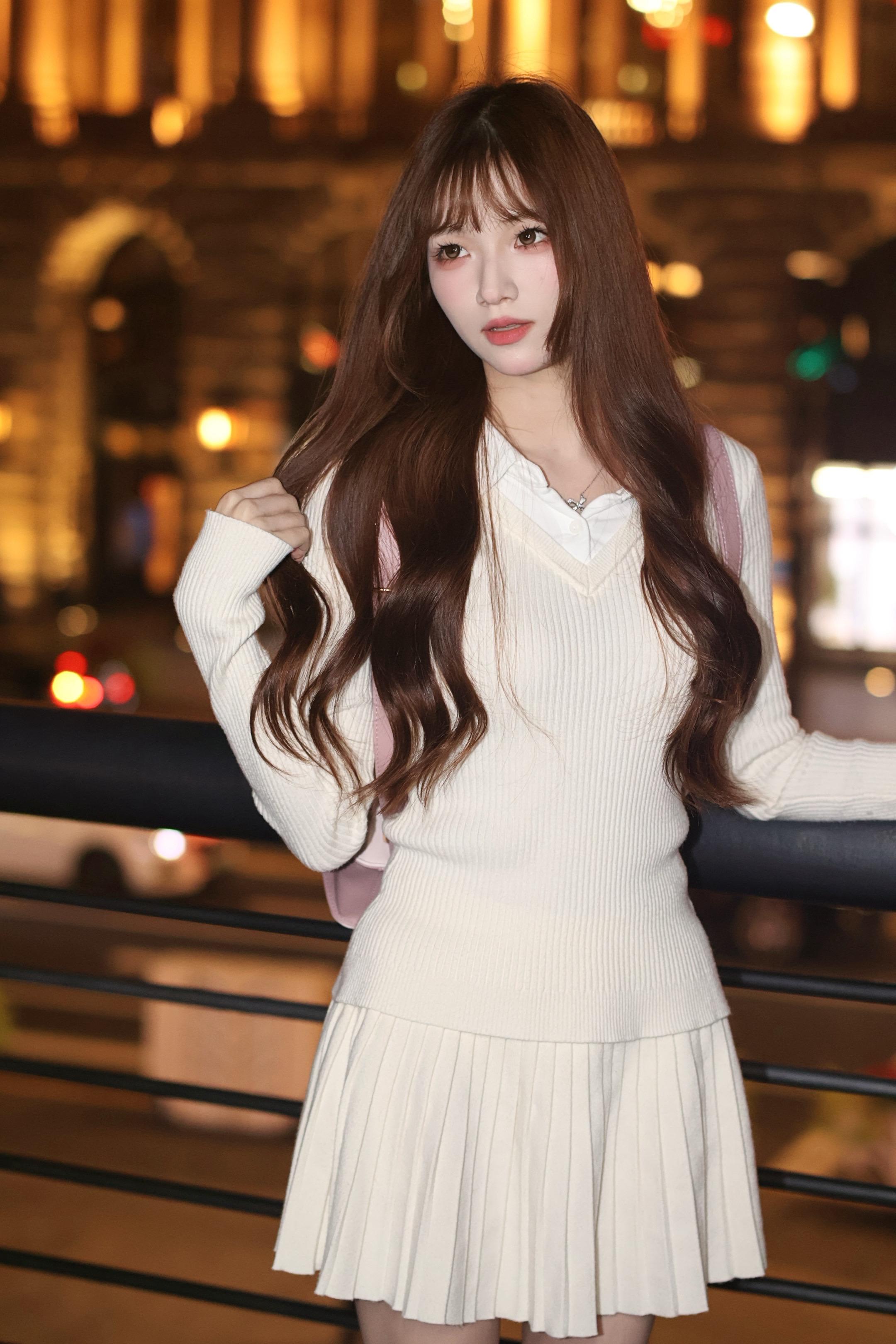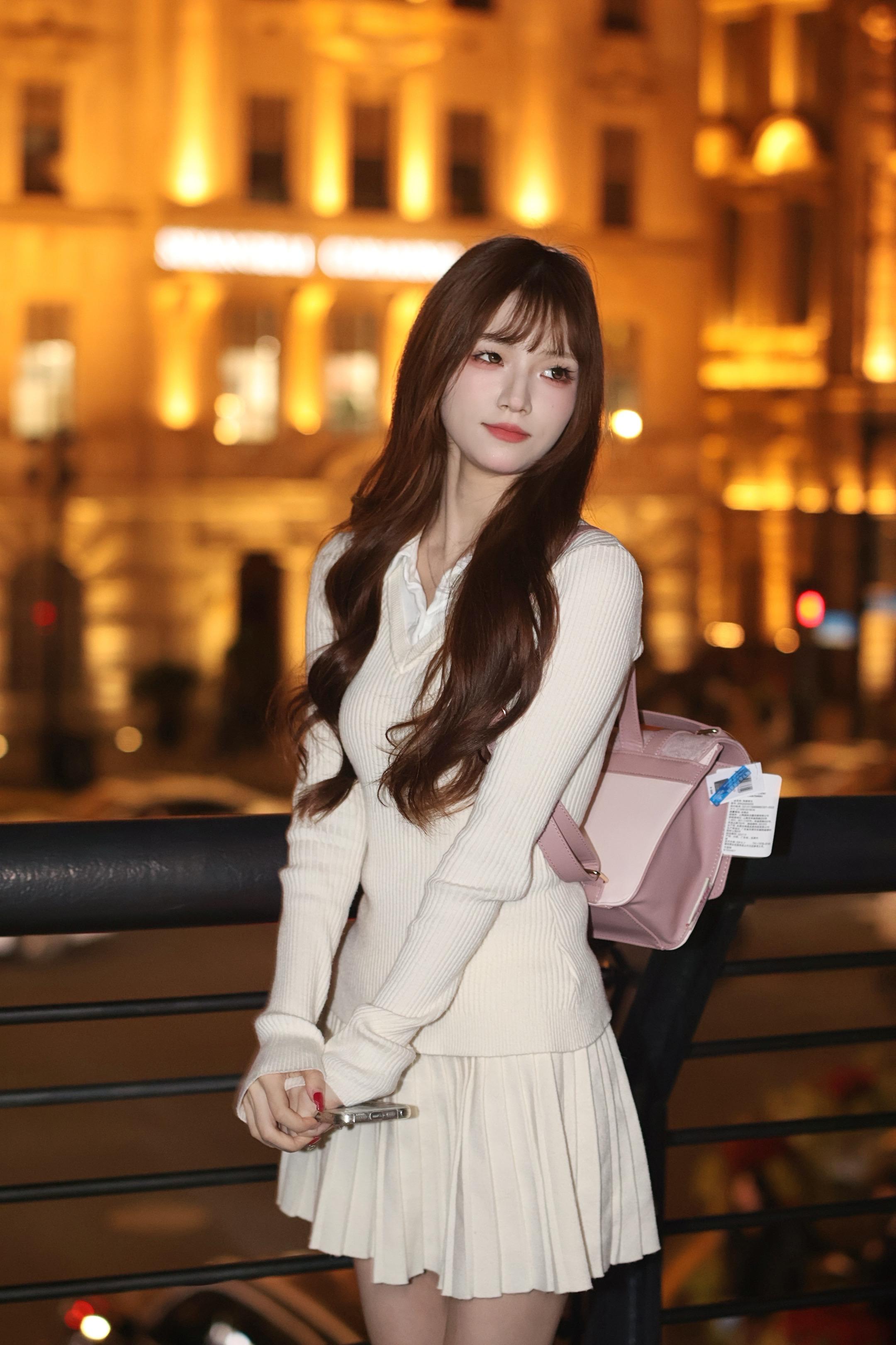 粉色系甜美气质。程儿的妆化的真好!街拍美女好身材车模