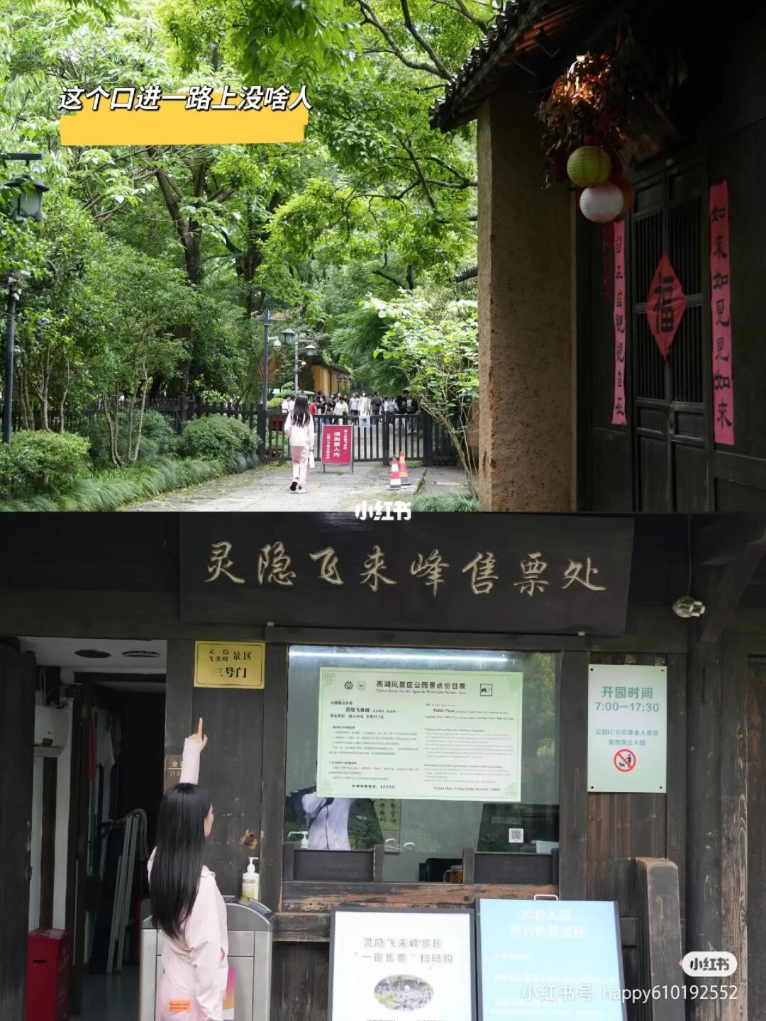 📍只要预约飞来峰景区就可以,进灵隐寺需要另外花30