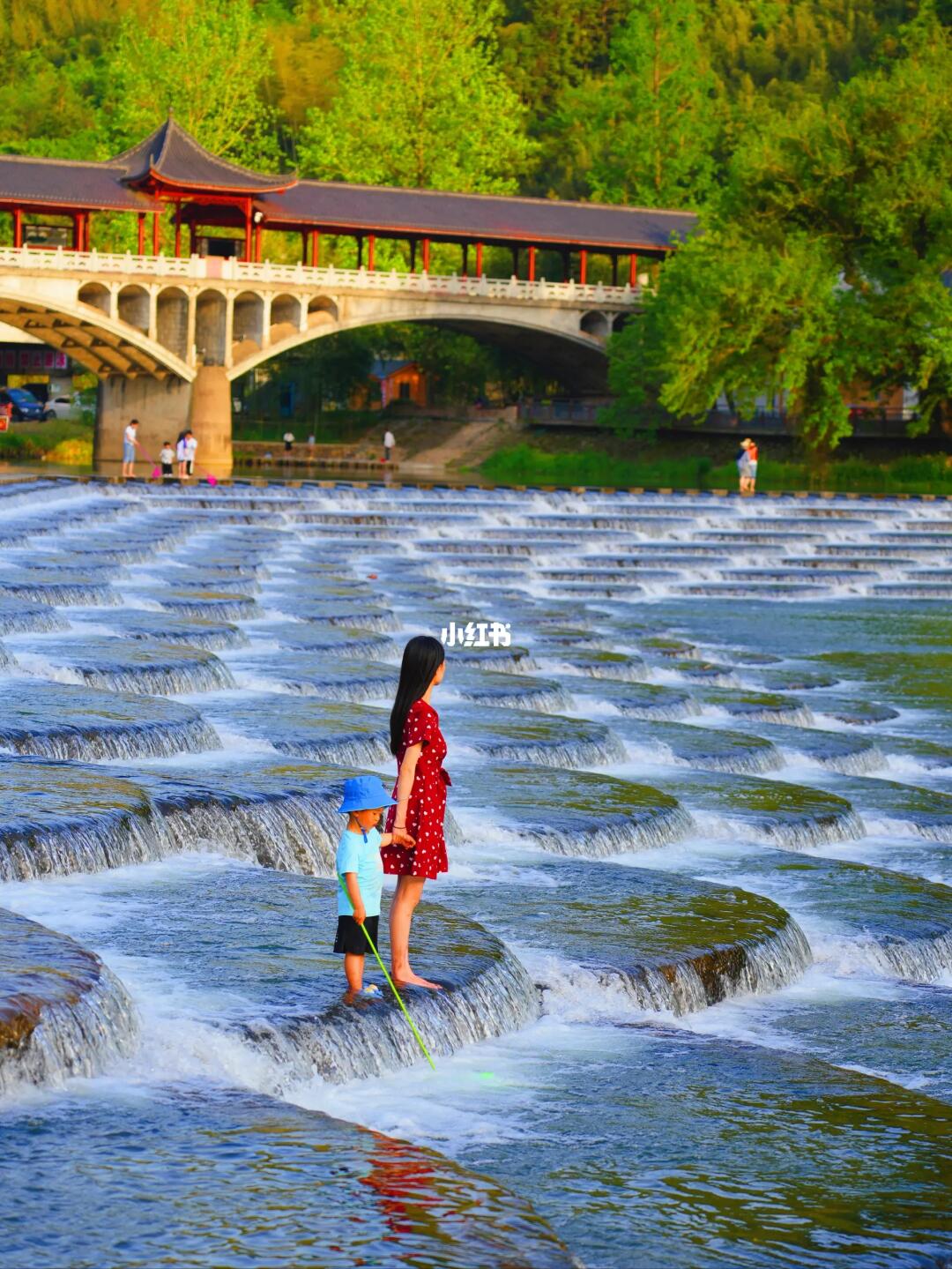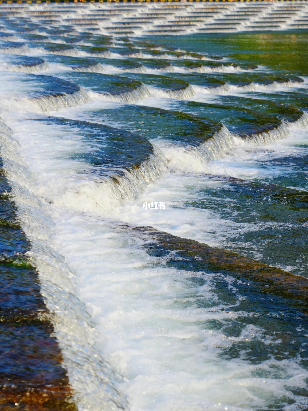1📍拍照出片,由鹅卵石铺筑,堰坝上层层叠叠的白色水花倾泻而下,在阳光的照耀下,特别好看