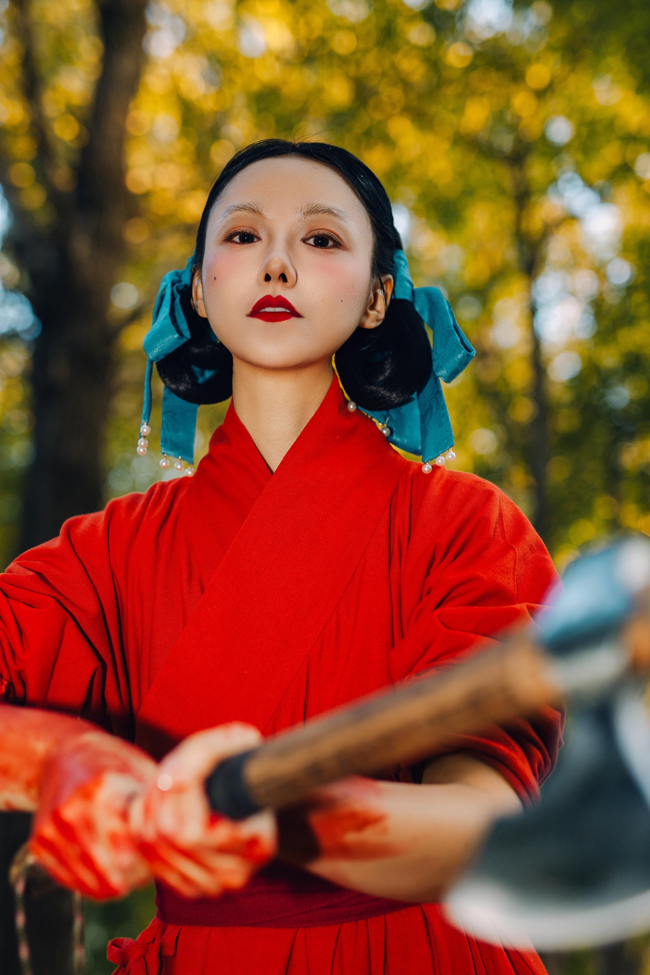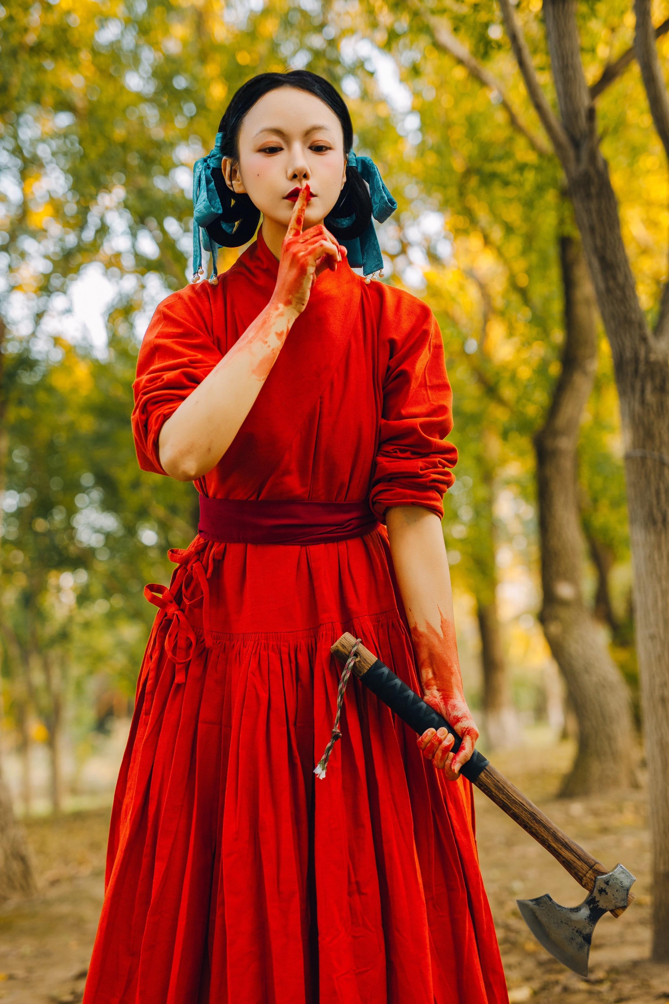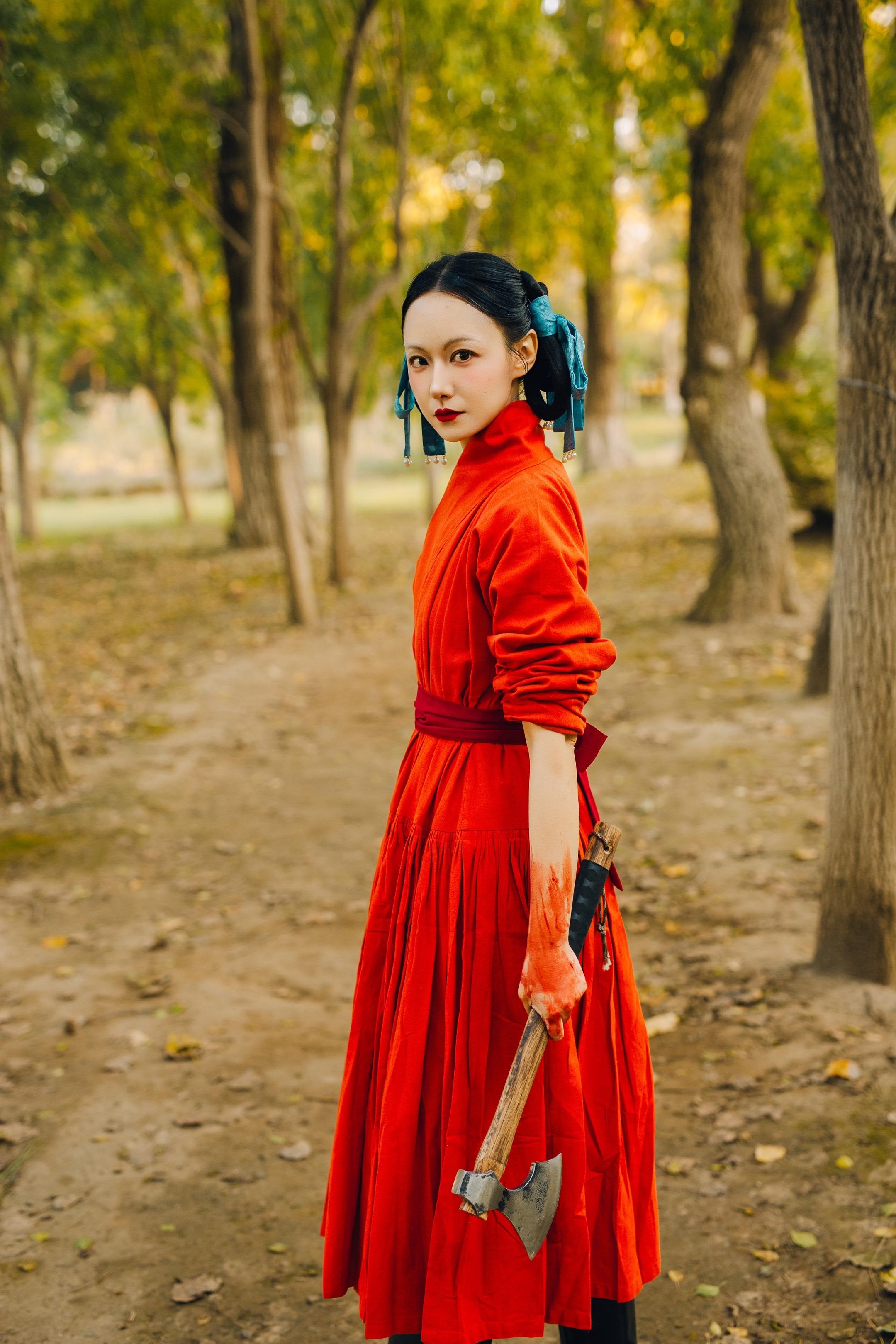 万圣节特辑|大明版珀尔。✨红色大明蓬蓬裙很有电影里珀尔红裙的感觉,突发奇想二创的大明版珀尔COS。