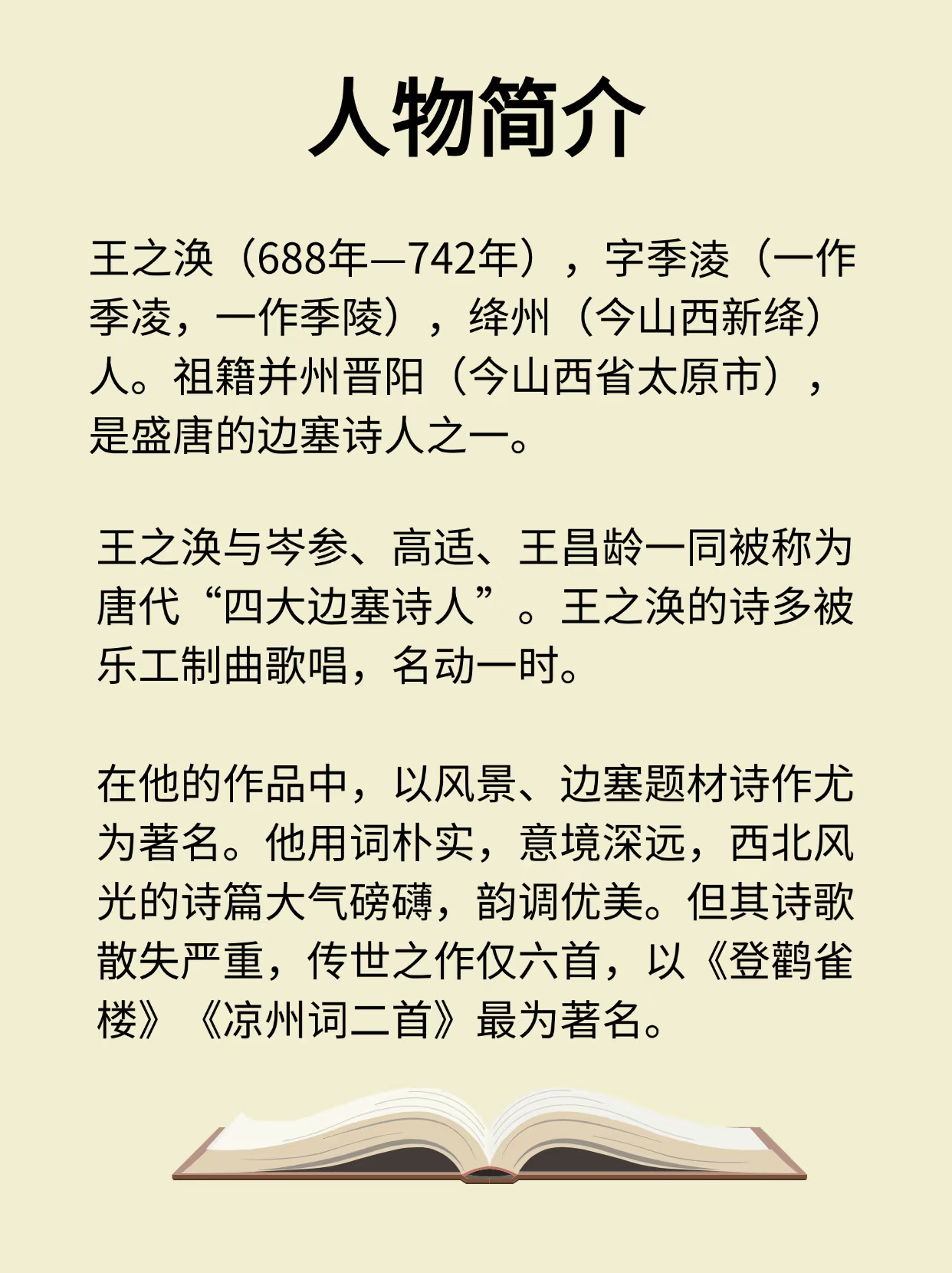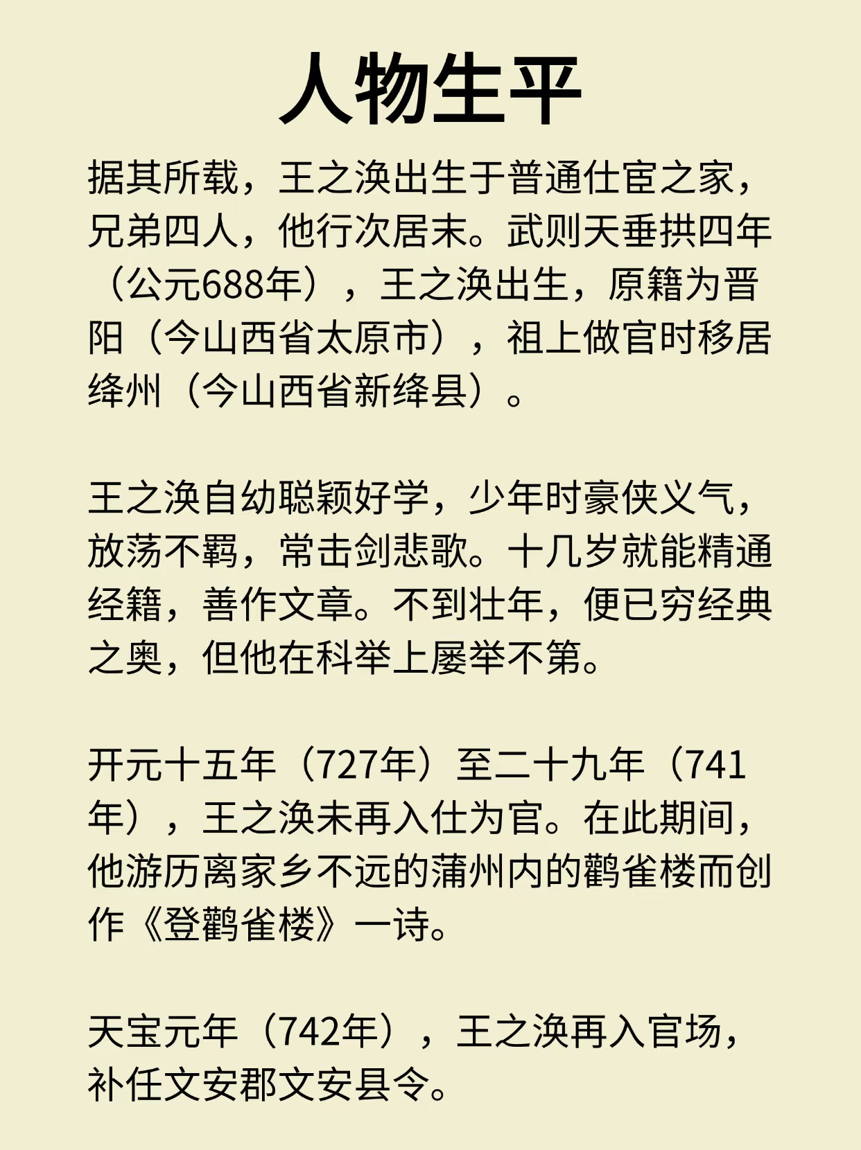 🍀唐睿宗垂拱四年(公元688年),王之涣出生于仕宦之家,在兄弟四人中行次居末。