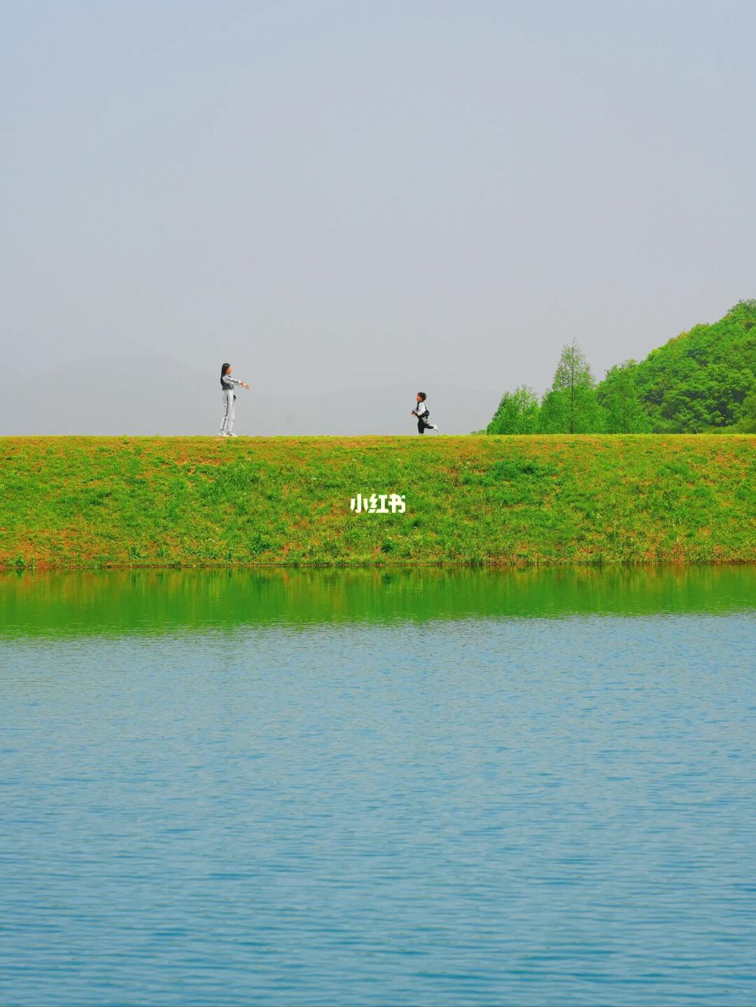 3[红色心形R]徒步,可以沿着水库徒步,满眼的春色,边上就是