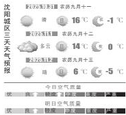 本报讯(沈阳晚报、沈阳发布客户端记者徐佳婷)10月30日,记者从沈阳市气象部门获悉,预计周五沈城依旧是晴朗的好天气,暖气团继续控场,最高气温16℃,最低气温-1℃,东北风转东南风2~3级,有冬日暖阳相伴,天气比较温暖,适合户外活动。