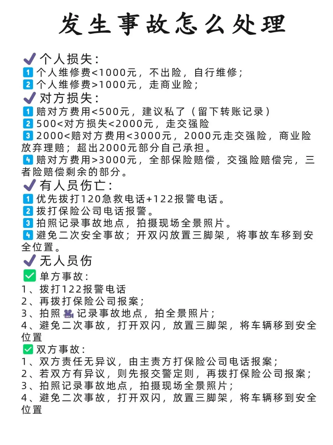 女生开车上路遇到事故千万不要慌!遇到剐蹭、事故,首先要冷静,✅我总结了交通事故处理流程,清晰易懂、简单明了,一看就懂! ➡️最后希望大家行车注意安全,永远都不要用到这份攻略‼️遵守交通规则 交通安全 行车安全 用车小常识 宝藏车知识 安全驾驶 用车小常识 女性成长 女性独立 道路交通相关分享 转自