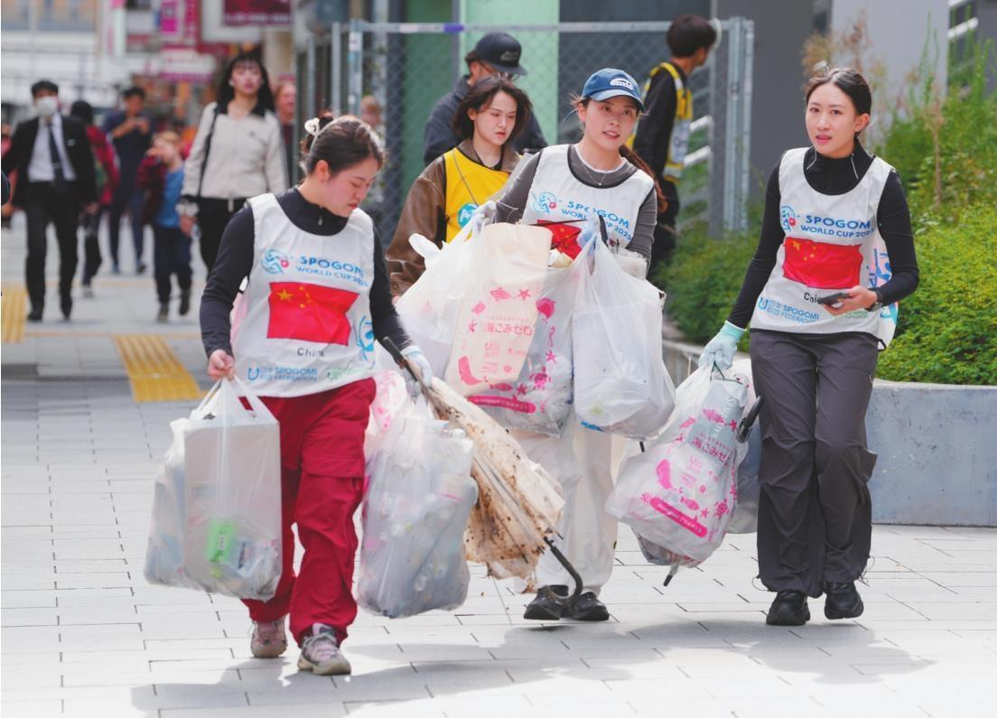 二〇二五年“捡垃圾世界杯”全球总决赛十月二十九日在日本东京举行,旨在以竞技宣传环保。三十三个国家的九十九名选手参与角逐,来自日本、德国和摩洛哥的队伍依次获得前三名。图为中国选手在日本东京参加捡垃圾比赛。